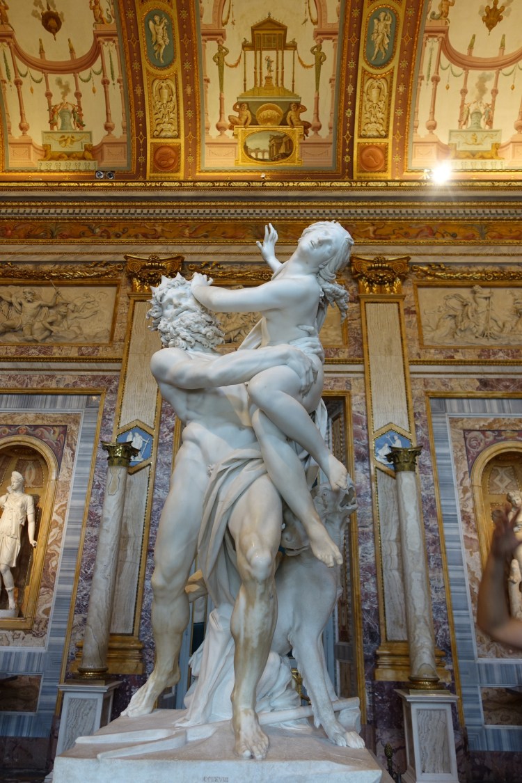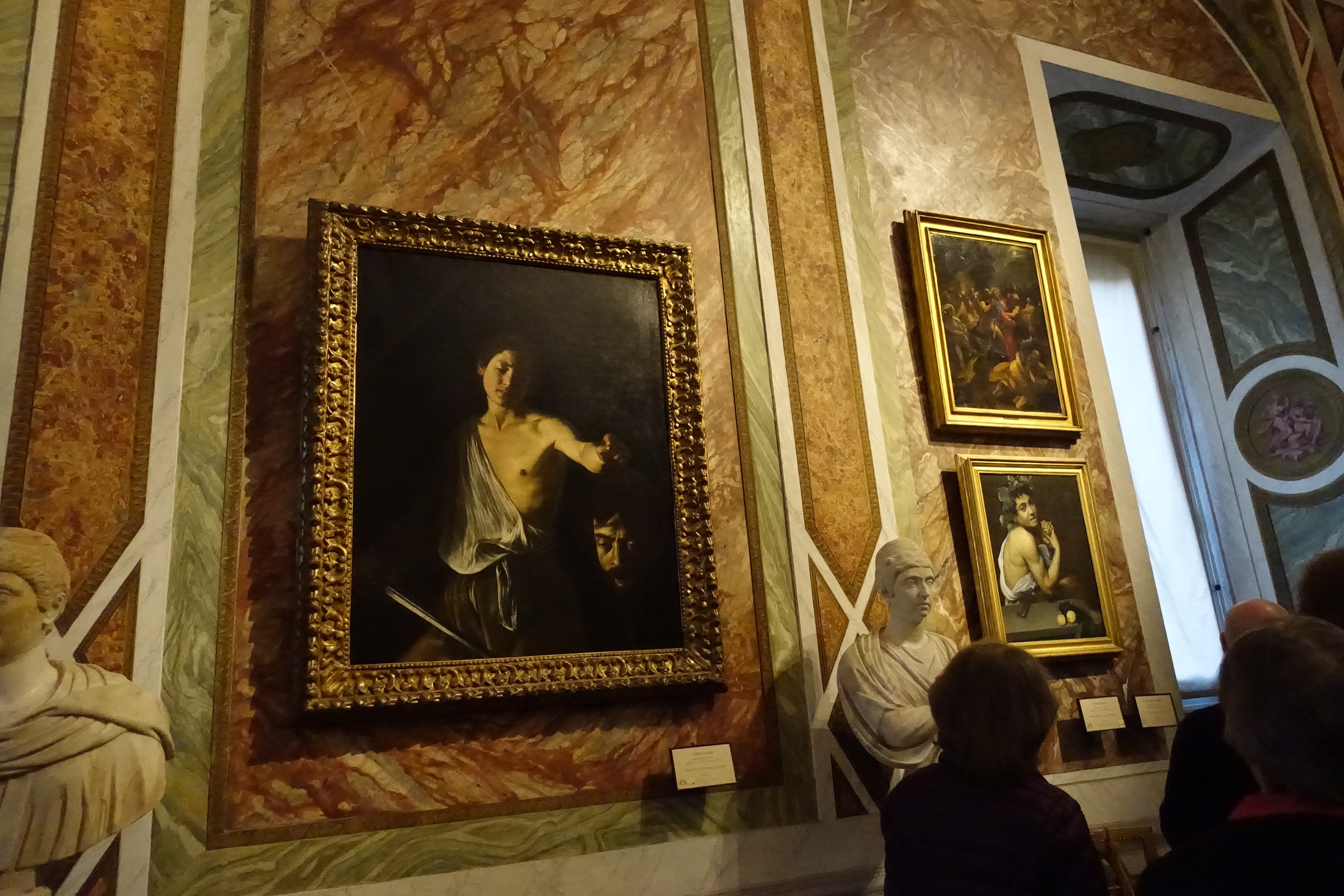 Scipione Borghese, who bought the Villa and built the casino, the building, to house his personal art collection, was an avid art collector but when his uncle became pope, he really went mad. Not only did he buy art but purloined pieces he fancied. He owned 6 Caravaggio paintings. Two were given to him by Caravaggio, two he put the owner in jail on trumped up charges until the paintings were handed over, and two he bought. My photo of the Madonna die Palafreneri somehow is missing and the photo of Boy with a Basket of Fruit, I haven’t posted.