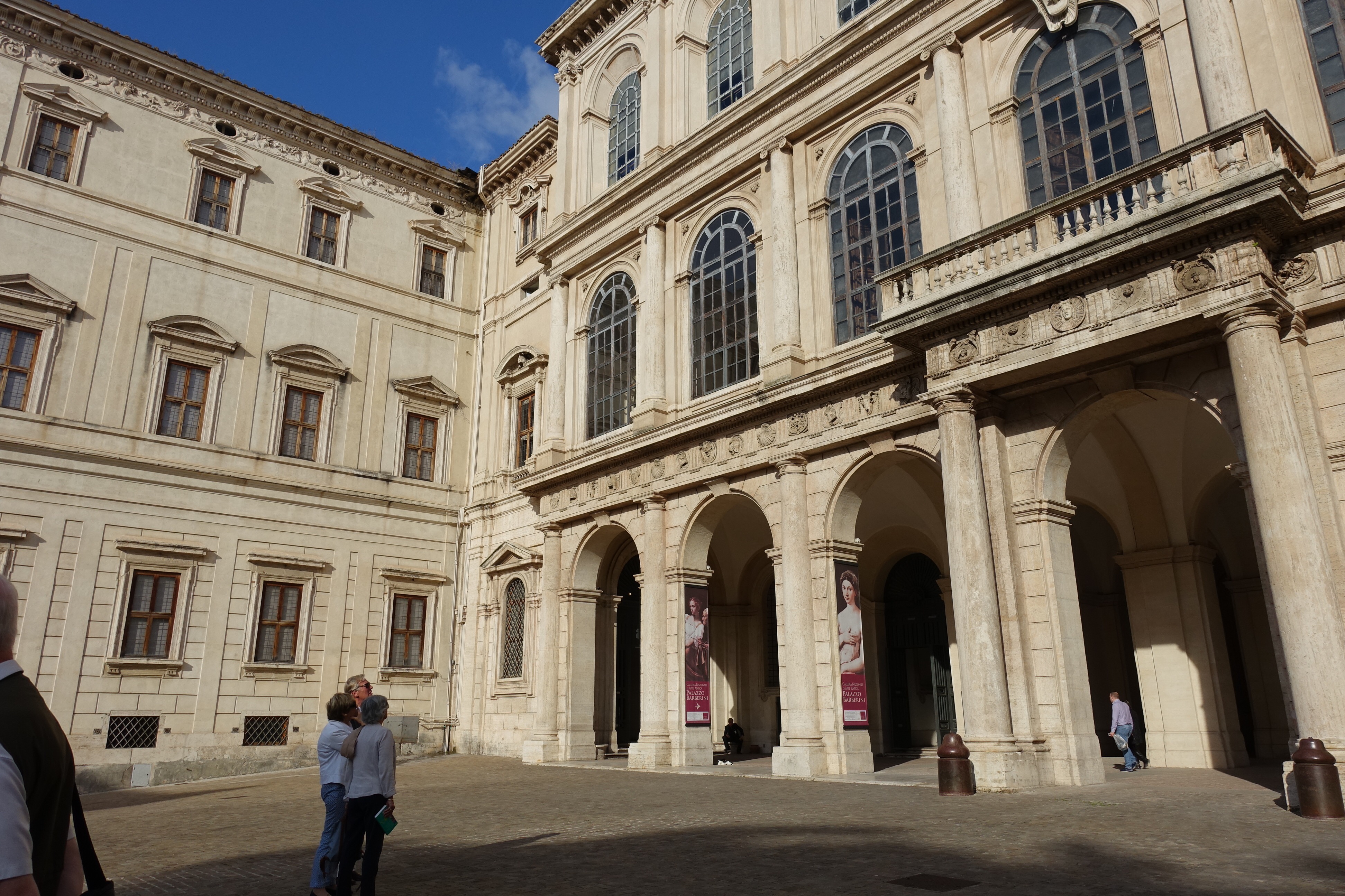 After lunch, Palazzo Barberini, another formerly no photography place, now allowing photos without flash. The Barberini was built by 2 nephews of a pope. If you didn’t know, nepotism is Italian for nephew and the origin of the word nepotism in English as the nephews of this era in Papal history received fortunes because of their pope uncles. They went top drawer and had the three top architects design their palace: Maderno, Bernini and Borromini.