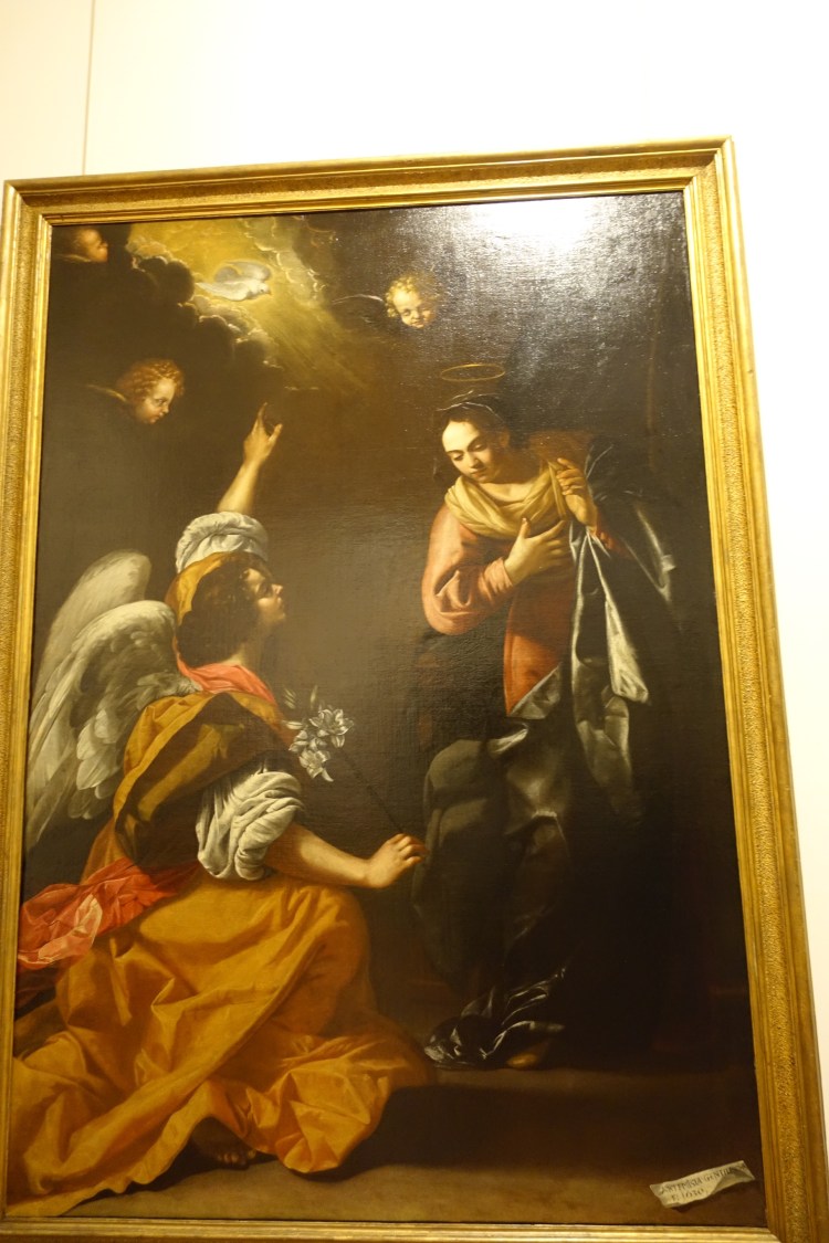 The above Annunciation by Artemisia Gentilrschi is interesting. She is one of the few female artists during that period. While young, she was raped by an artist Tassi and the prosecution of her rapist became more of a prosecution of her. She was tortured to determine if she was telling the truth. Tassi was sentenced to one year but never served a day. Feminist art historians are interested in her, especially because one of her favourite subjects was Judith Beheading Holofernes. The psychological interpretations are obvious. The Capodimonte has one of them but it was out on loan.