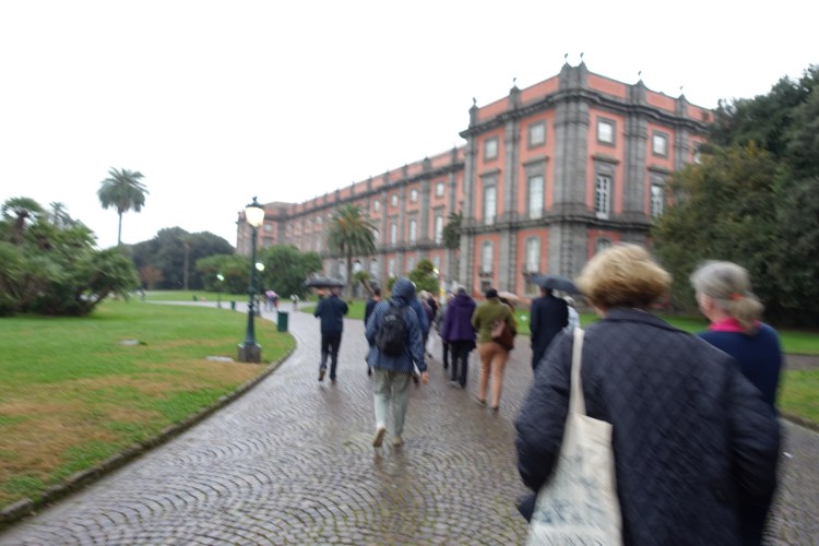 After lunch, we took a coach (bus) up to the top of the main hill in Naples, Capodimonte. Sadly it was raining so we couldn’t see Vesuvius. We went to the Museo di Capodiamonte, the largest art collection in Europe. We went to see The Flagellation of Christ done during his first visit to Naples.