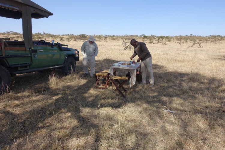 After a night when we could hear lions and hyenas, we were woken at 5:45 with coffee. Into the Land Cruiser at 6:15 to seek early morning activity. We missed a cheetah kill but saw the cheetah.