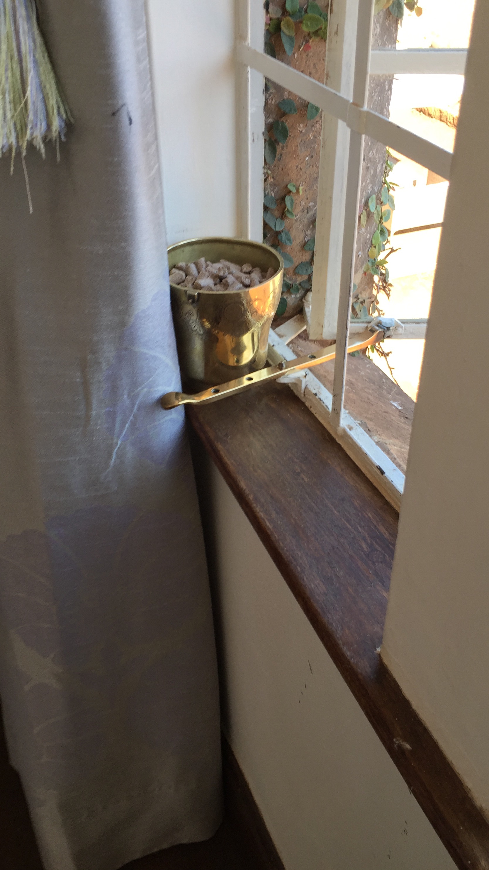 Our second floor room windows are accessible to the giraffes. A bucket on the window sill was filled with the giraffe treat pellets so you can feed them from your bedroom window.