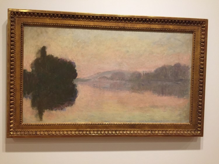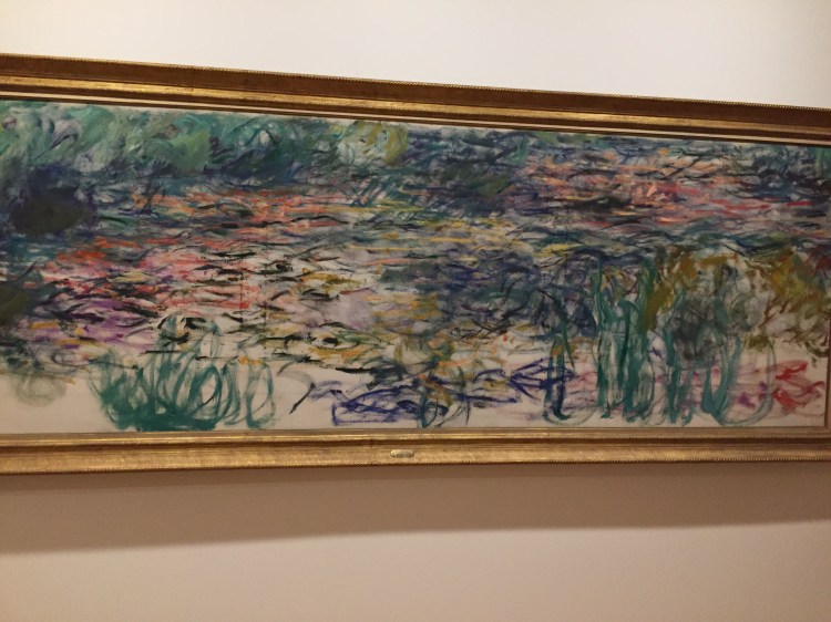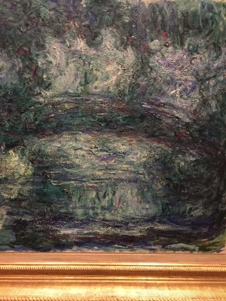 In the Giverny paintings, Monet continued his serial studies to the point where he abandoned horizons–unheard of for landscapes. And the influence of Japanese woodblock prints brought an emphasis to the surface of the painting. Paintings became about paint, not illusion. Very modern.