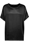 The black T shirt is silk so when paired with the skirt will look more like a dress.