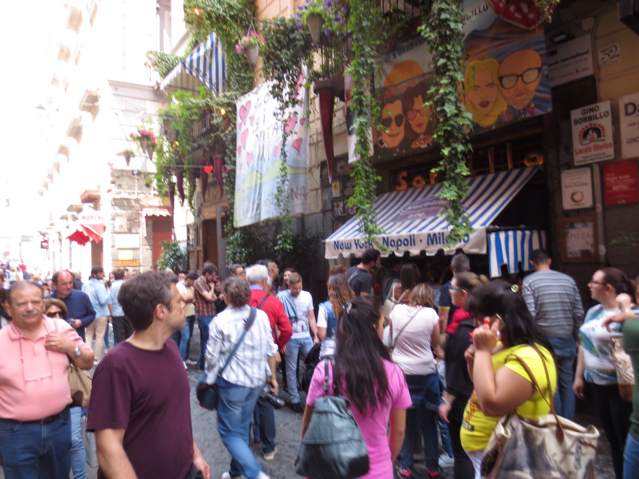 Our driver from yesterday, Mario, told us we shouldn’t leave Naples without eating pizza in the historic centre. The most popular places had long queues, like Sorbillo. Some bloggers claim the wait is worth it, but Scott was not convinced, especially since standing on cobblestone hurts his knees.