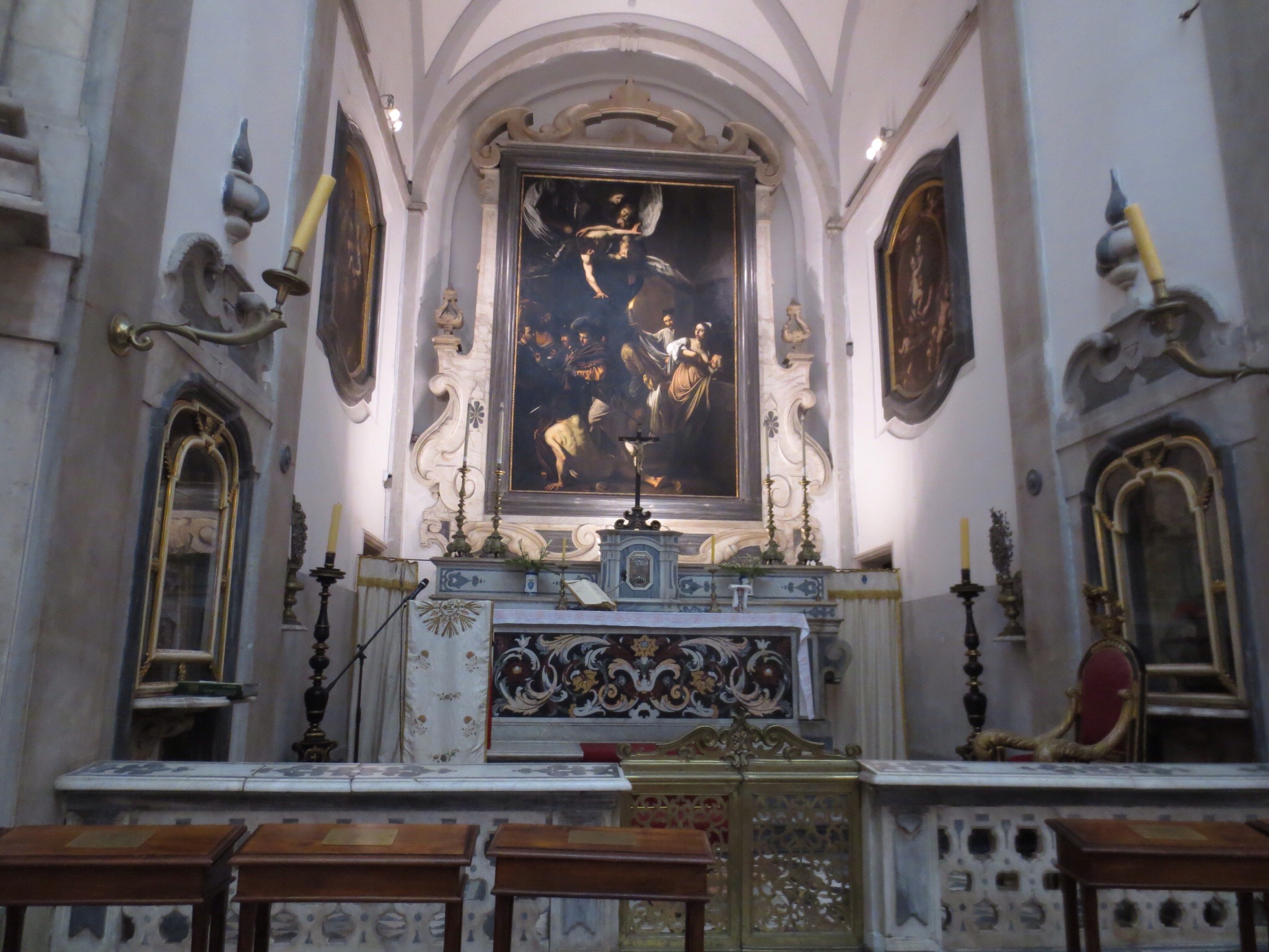 Our visit in Naples itself has been more of a journey on the less well travelled paths, if we exclude the Museo Nazionale. Today we went to the historic centre, which was very busy, but we stopped at places which did not have crowds. First to Palazzo Zevallos Stigliano on busy Via Toledo to see Caravaggio’s Martyrdom of Saint Ursula. This was the last painting he ever painted.