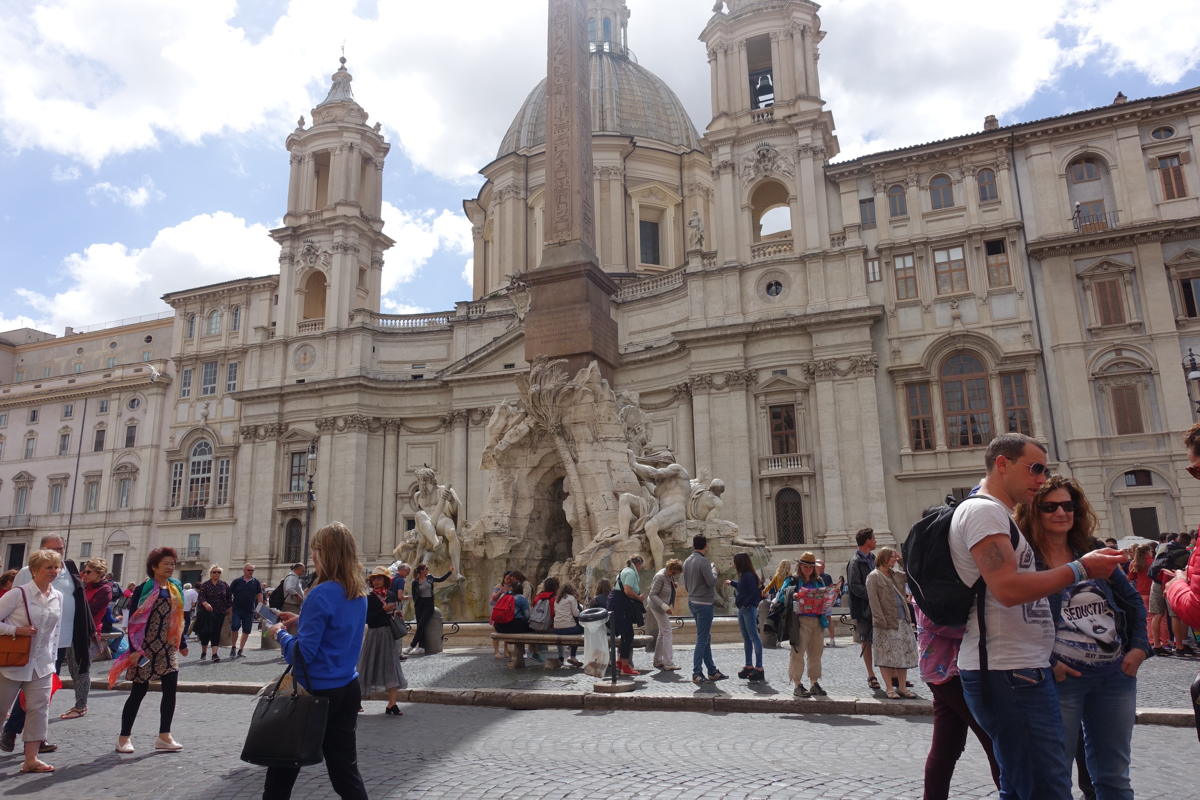 It’s not clear in the photo that water is spouting from her breasts. Then a stop at Piazza Navona to see Bernini’s Fountain of the Four Rivers and Borromini’s church of Sant’Agnese in Agone: