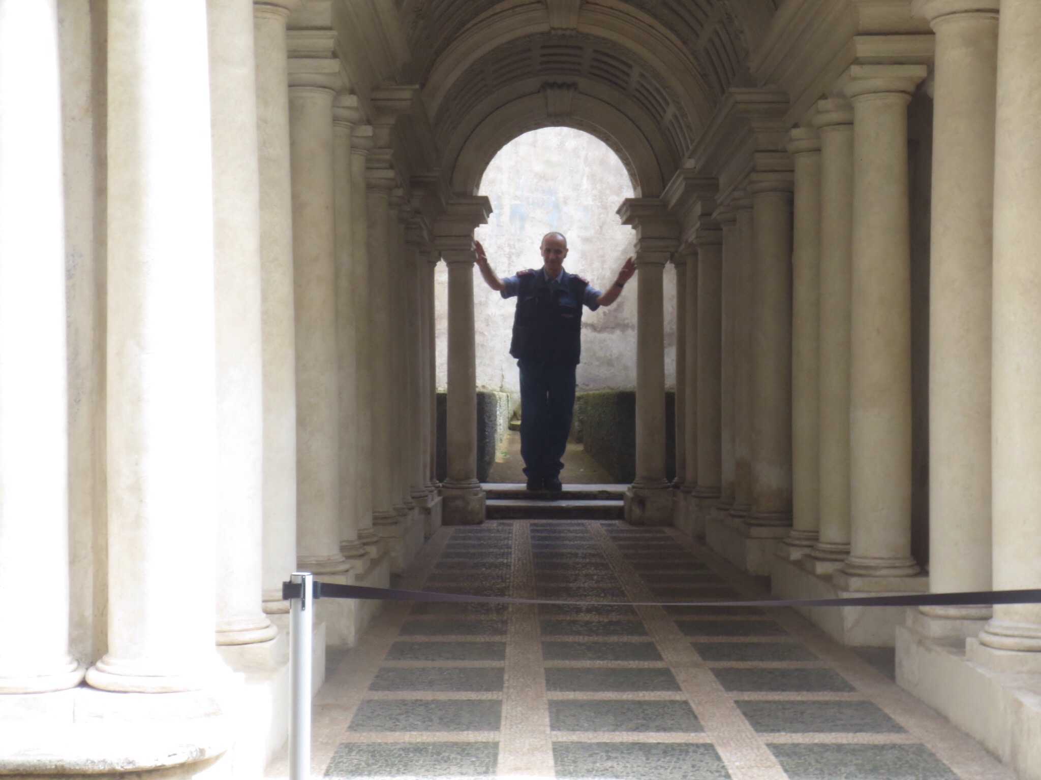 We then wanted to go to nearby Palazzo Spada. We walked in circles trying to find the entrance. It is located in the same building as the Consigliere de Stato or some government office, it appears, so was full of police at the front entrance. We went to see Borromini’s perspective gallery.