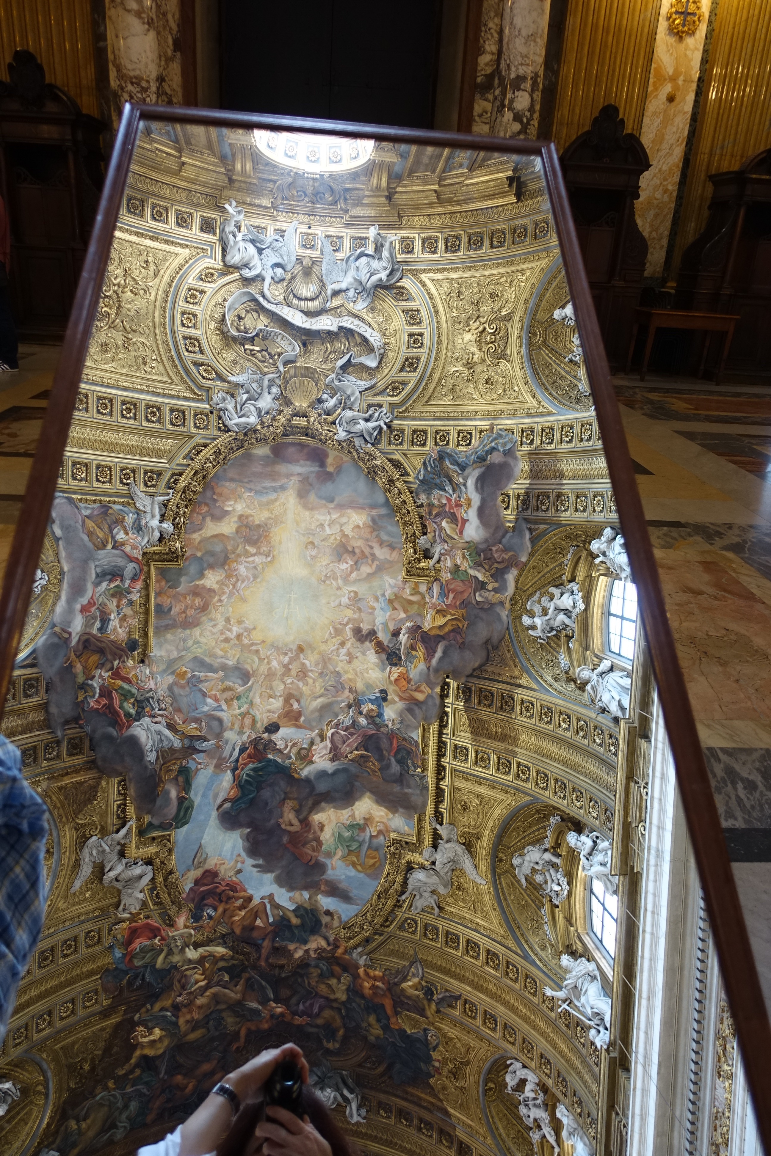 Went into Il Gesu to look at the illusionist ceiling by Gaulli also known as Baciccio :