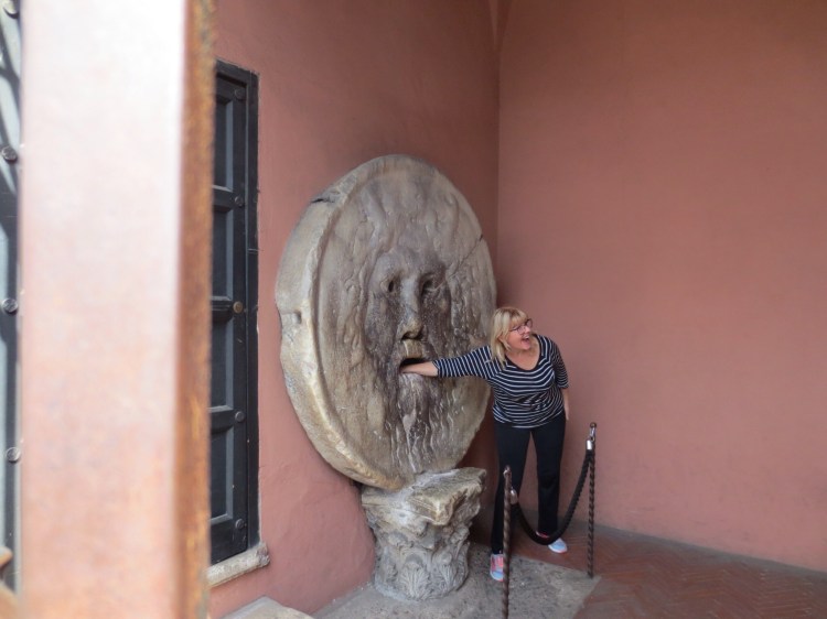 Went to Bocca Della Verita.. It features in a scene in “Roman Holiday” an Audrey Hepburn, Gregory Peck 1953 movie. There was another queue of people; they were wanting to stick their hand in the mouth.