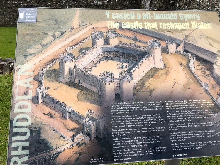 Edward I built most of the castles we were going to look at. He started in the 1270s with trying to conquer Wales after his father Henry III died in 1273. He completed his conquest (legally) in 1283. The last castle he built before the conquest was Rhuddlan.