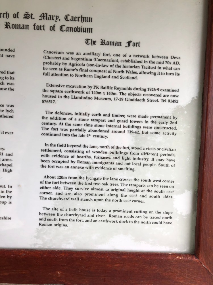 We also looked at the site of the Roman fort of Canovium, which was excavated then covered up, at the landowner’s request. Lambs are now running above the ruins.