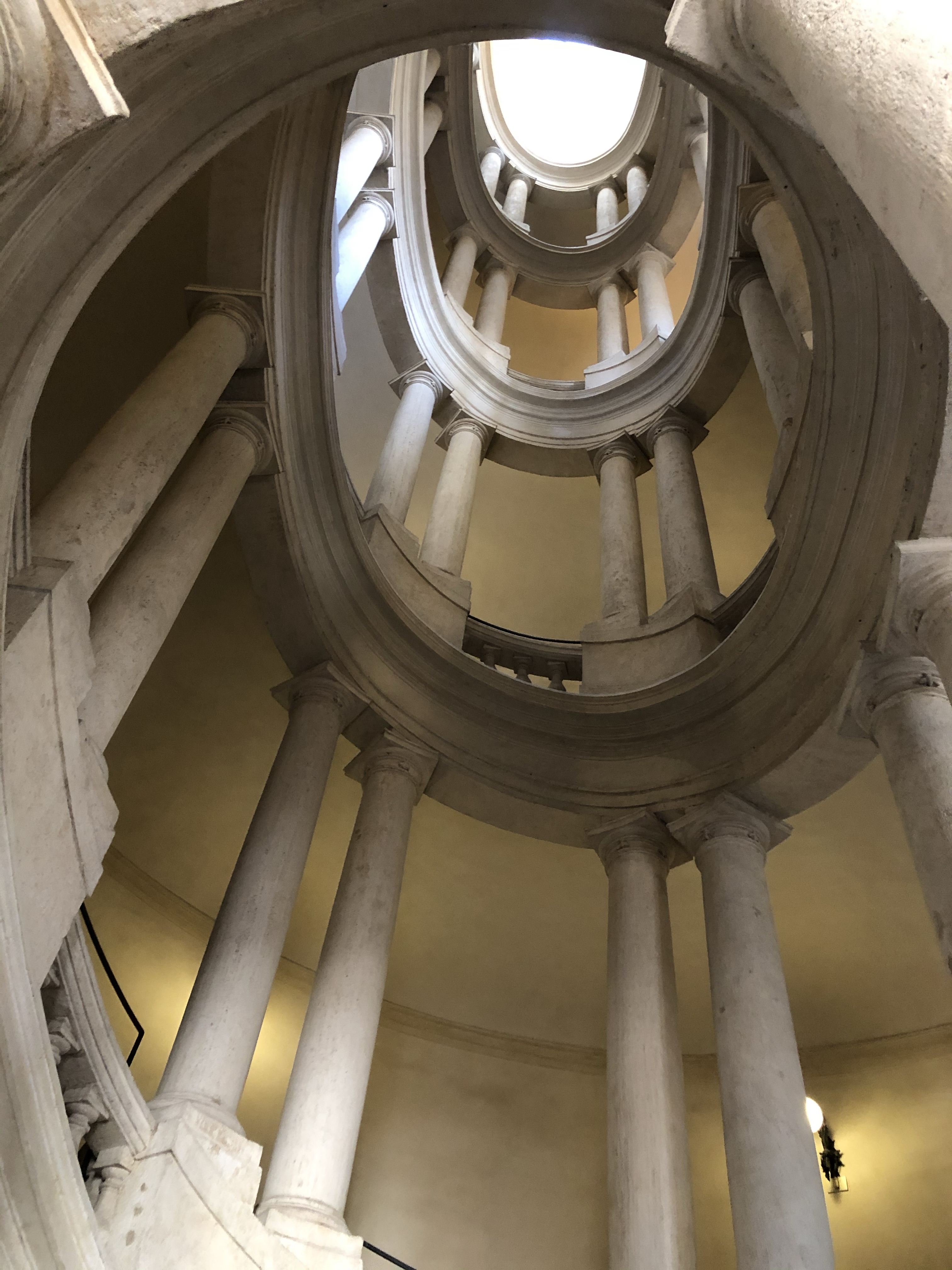 He started as a stone mason (his father was also a stone mason) but after studying in Milan, he moved to Rome in 1619 to work for the architect Carlo Maderno, a distant relative. At that time, Maderno was working on the façade of St. Peter’s Basilica as well as Palazzo Barberini. Also working on Palazzo Barberini was Gianlorenzo Bernini.