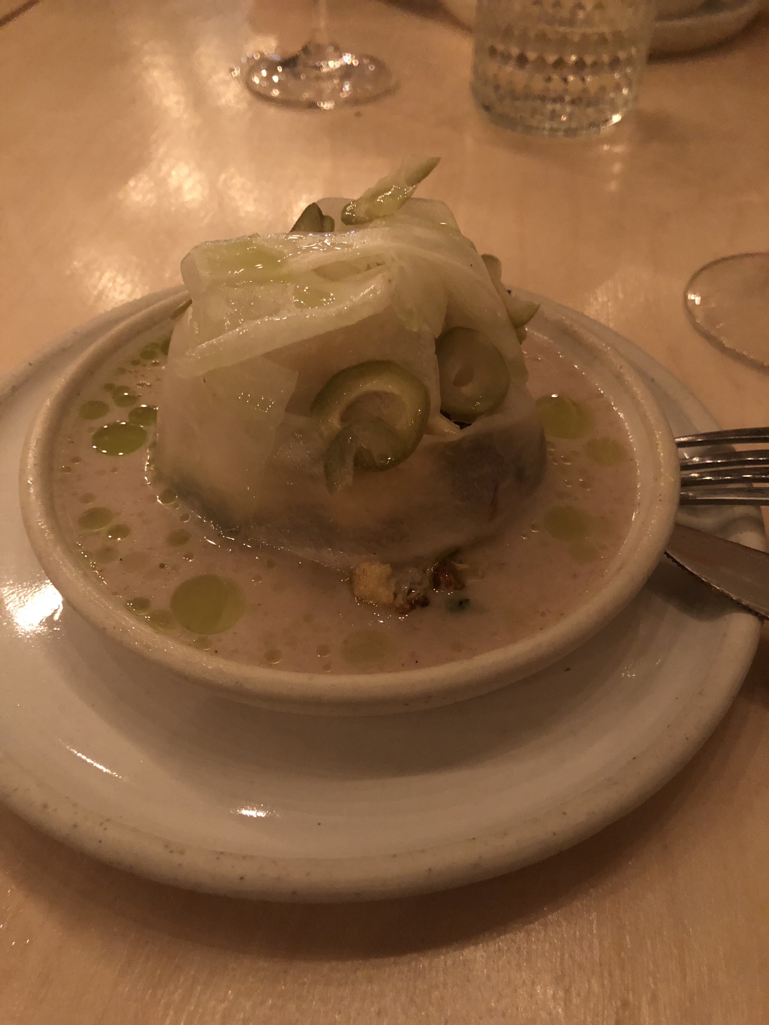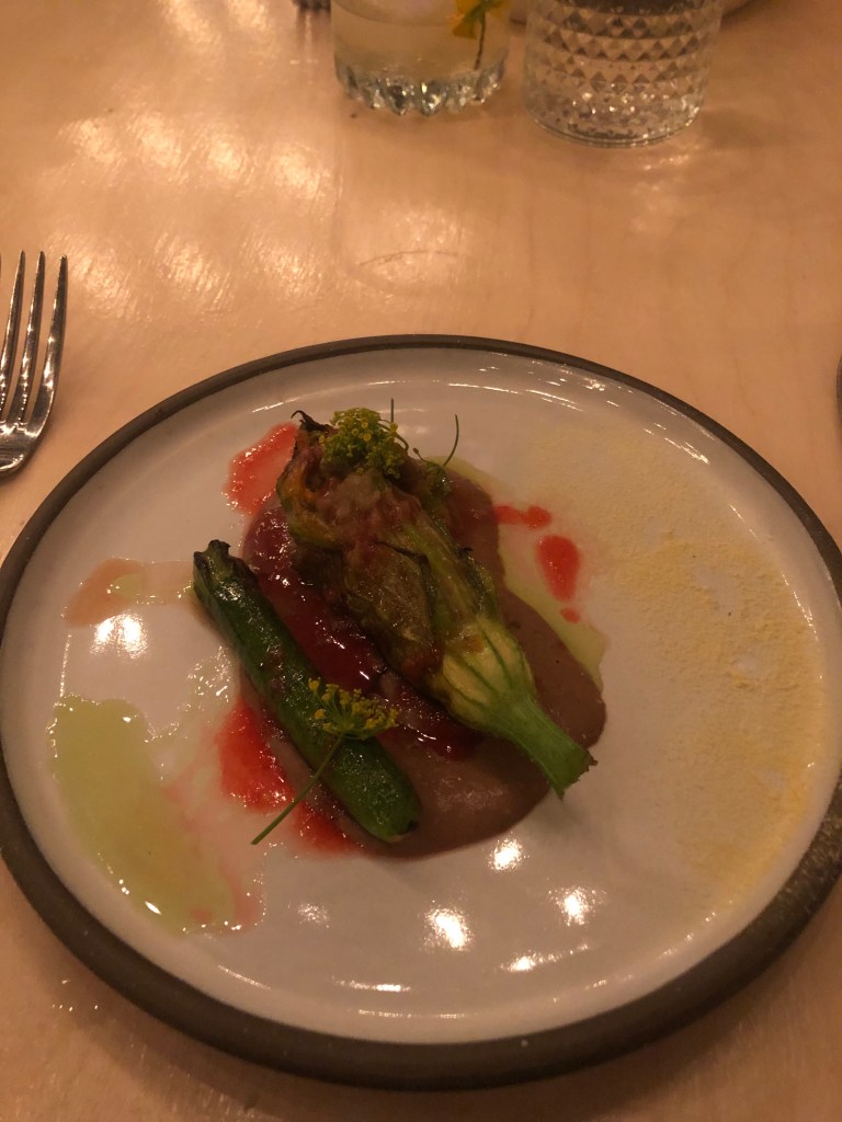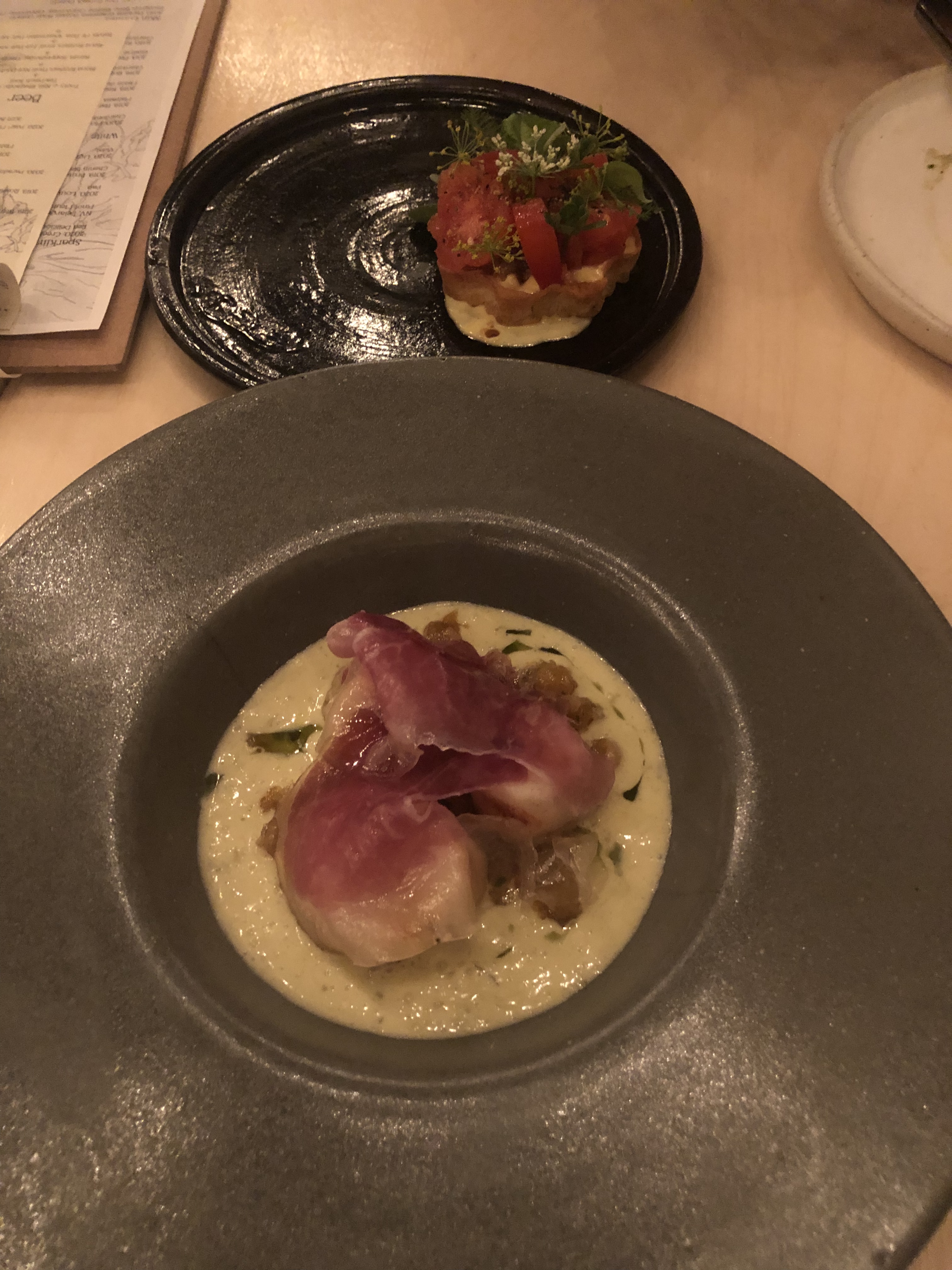 Our last dinner was at Grey Jay, where they feature local ingredients. The tables are all outside in a covered alleyway. We tried the Chef’s Tasting five course option.