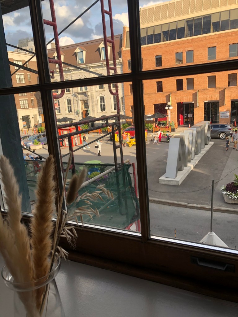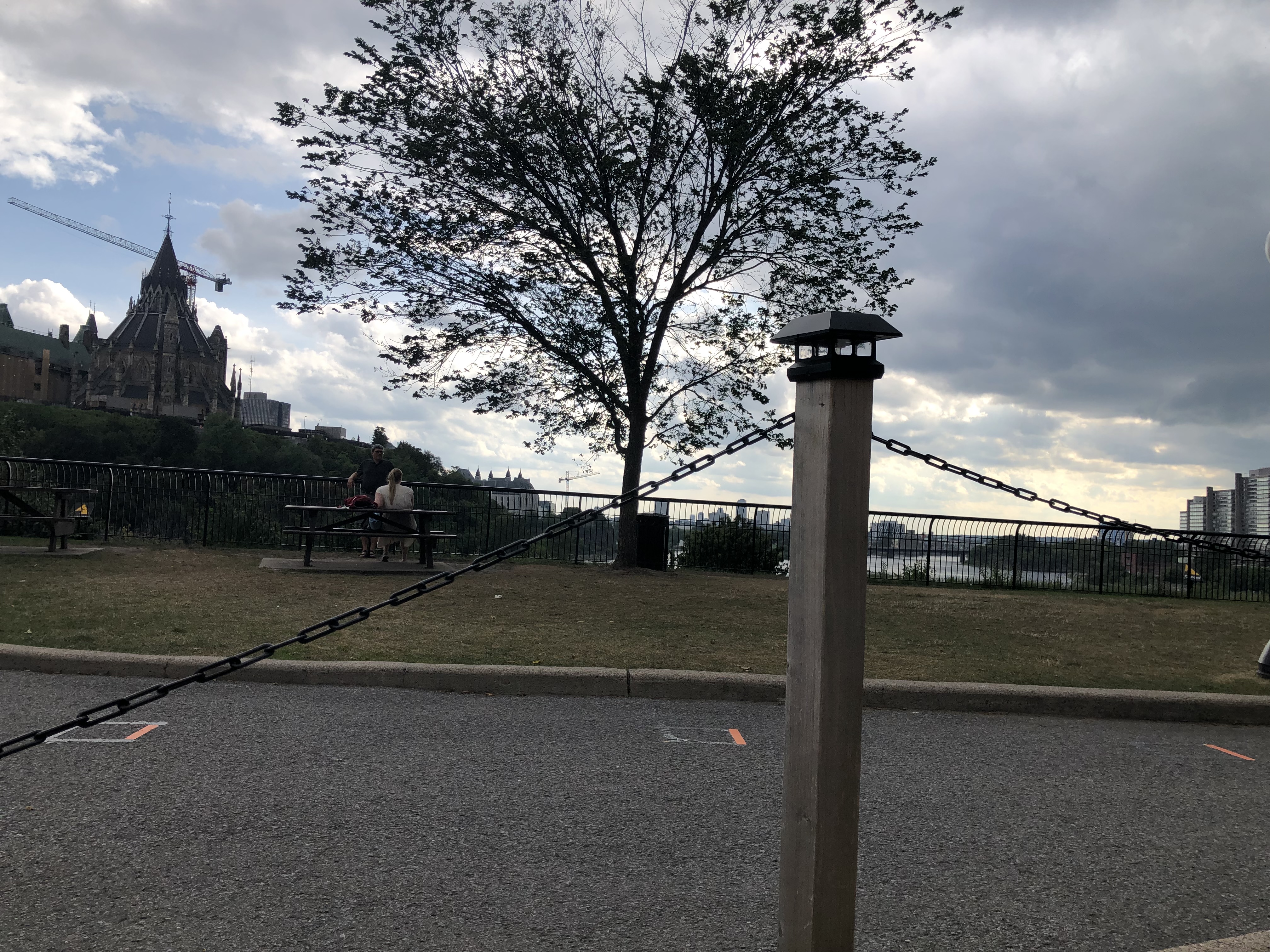 Weather had cooled down enough that we sat outside at Tavern on the Hill for a drink and a view of the Ottawa River and Parliament library.