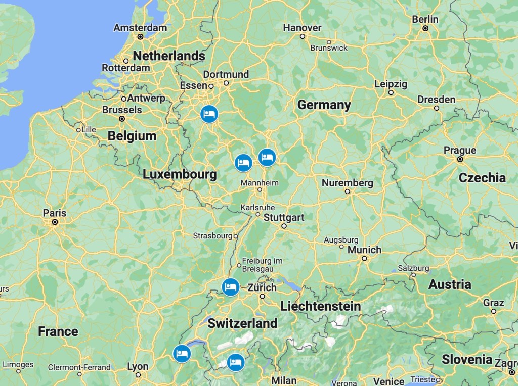 Planning this trip involved a lot of anxiety as we tried to keep up to date on the ever changing rules for Covid-19, not just in Canada, but also in Switzerland and Germany. And of course, every country has had different rules. As I write, the rules are still changing. Most of the rules for testing have eased up which means we won’t need to buy test kits or find out where to get tested before leaving or returning. On the other hand, the reduction of protective measures has also resulted in increased infections, notably, in Switzerland and Germany. We are going to have to continue to be careful.