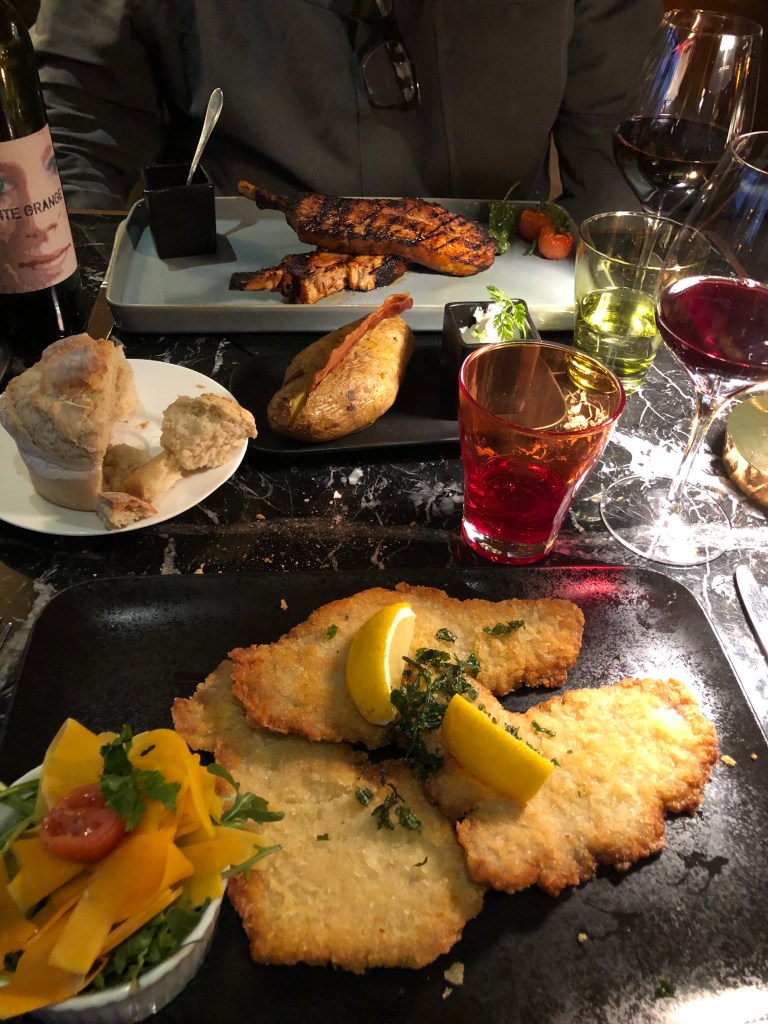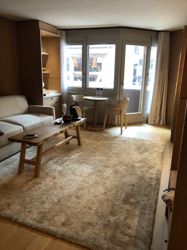 I booked dinner at Schweizerhof Kitchen which is the main dining room of the hotel. It seemed convenient. Turned out not to be our kind of place as there was a DJ playing loud dance music.
