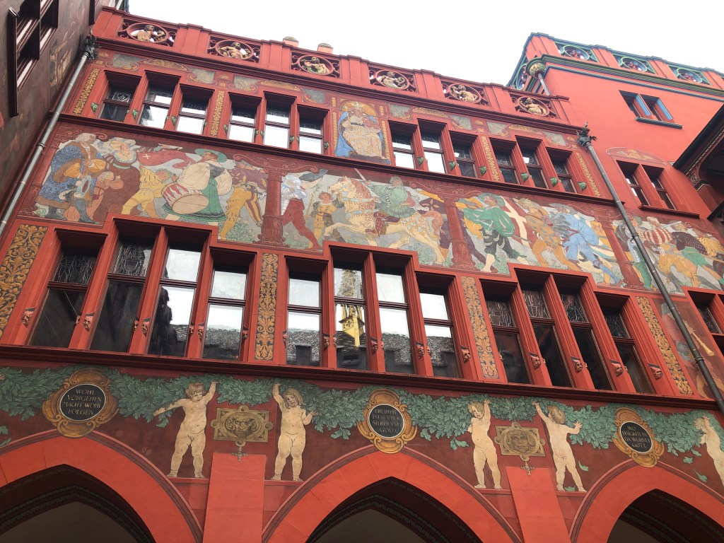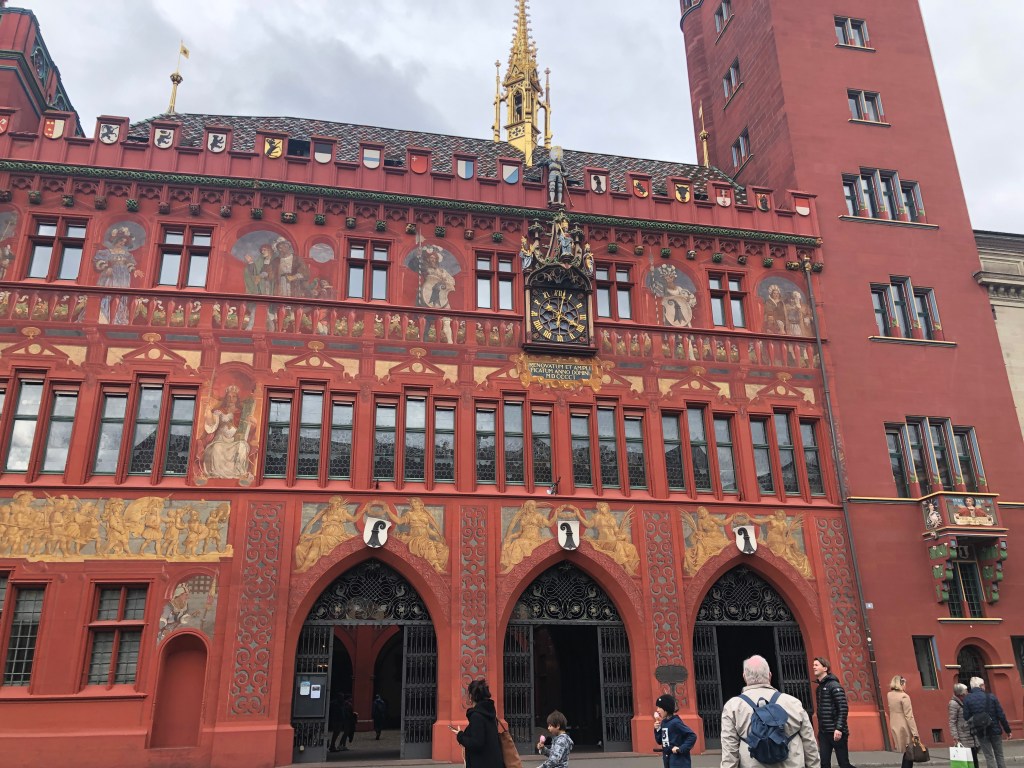 Nearby is the Mittlere Rheinbrücke, where the earliest bridge across the Rhine was built to connect Gross Basel with Klein Basel. The latter was the working class and industrial area.