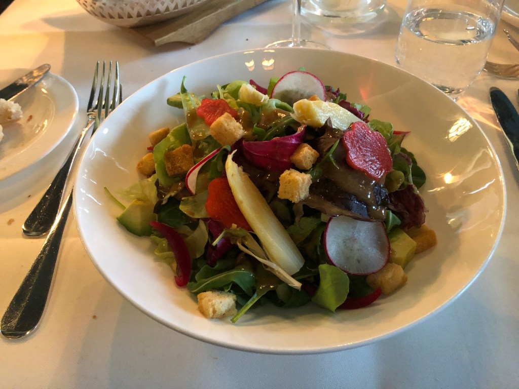 Dinner was at Les Trois Ross, the oldest hotel in Basel and named for the three wisemen who brought gifts to baby Jesus. They did not stay at this hotel, but the reference is about giving comfort to travellers. Our daughter-in-law recommended the bar for the view of the river and the availability of a number of wines by the glass. There is a Michelin star restaurant, Cheval Blanc, but we went to the more casual Brasserie.