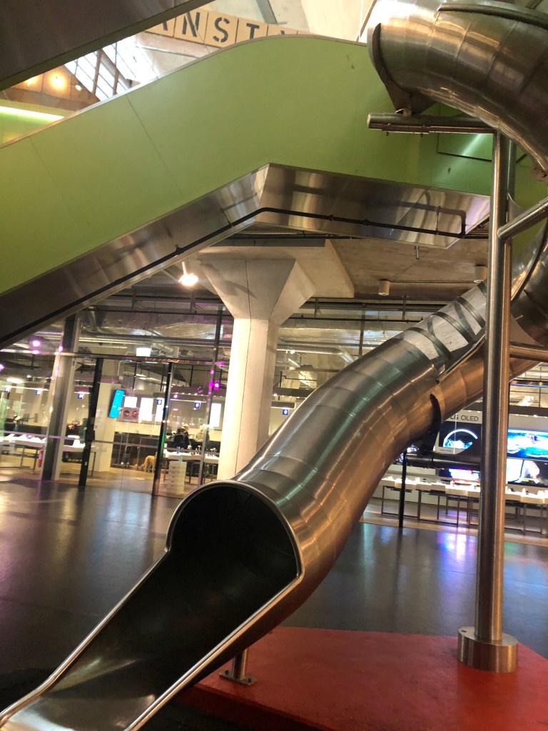 There was an electronics store and a big gymnasium/fitness centre in the basement and a slide as well as escalators.