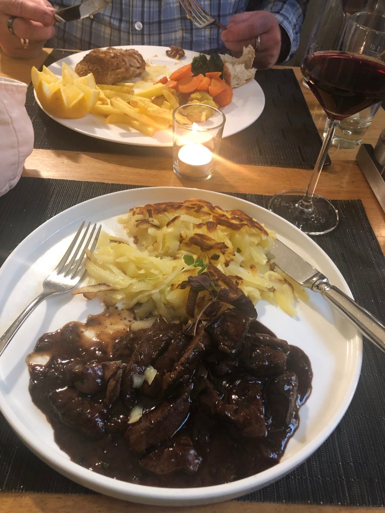 I ordered veal liver and Scott had chicken Cordon Bleu. So much for lighter dinner.