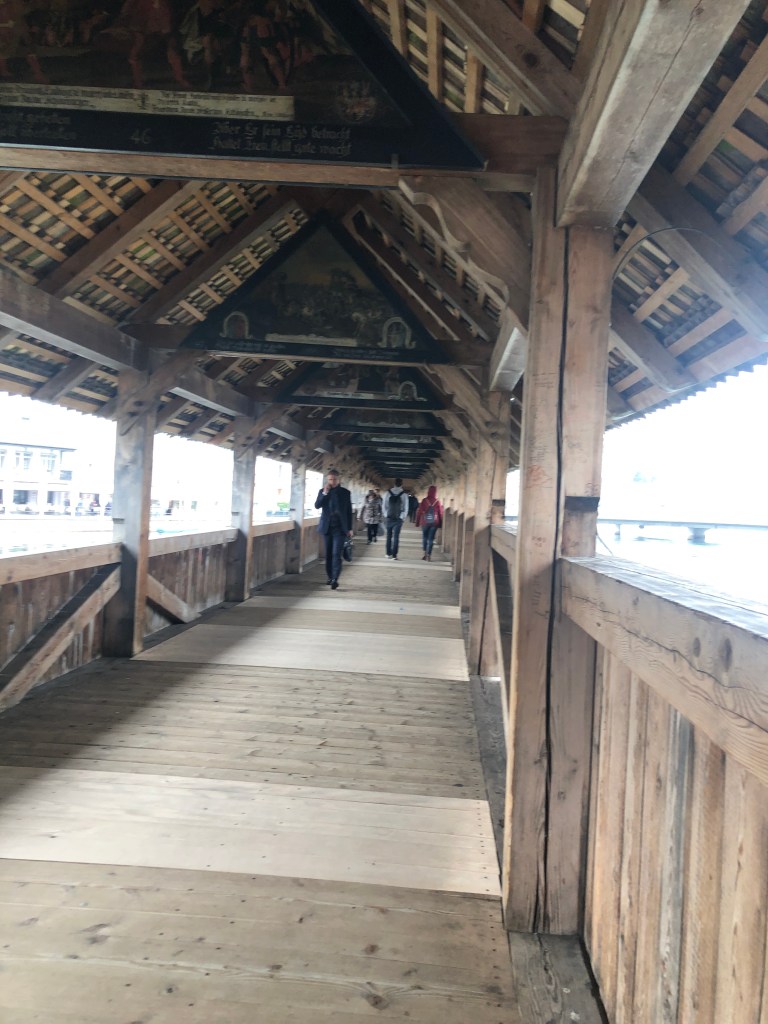 The bridge is called Chapel Bridge because it leads to St. Peter’s Chapel.