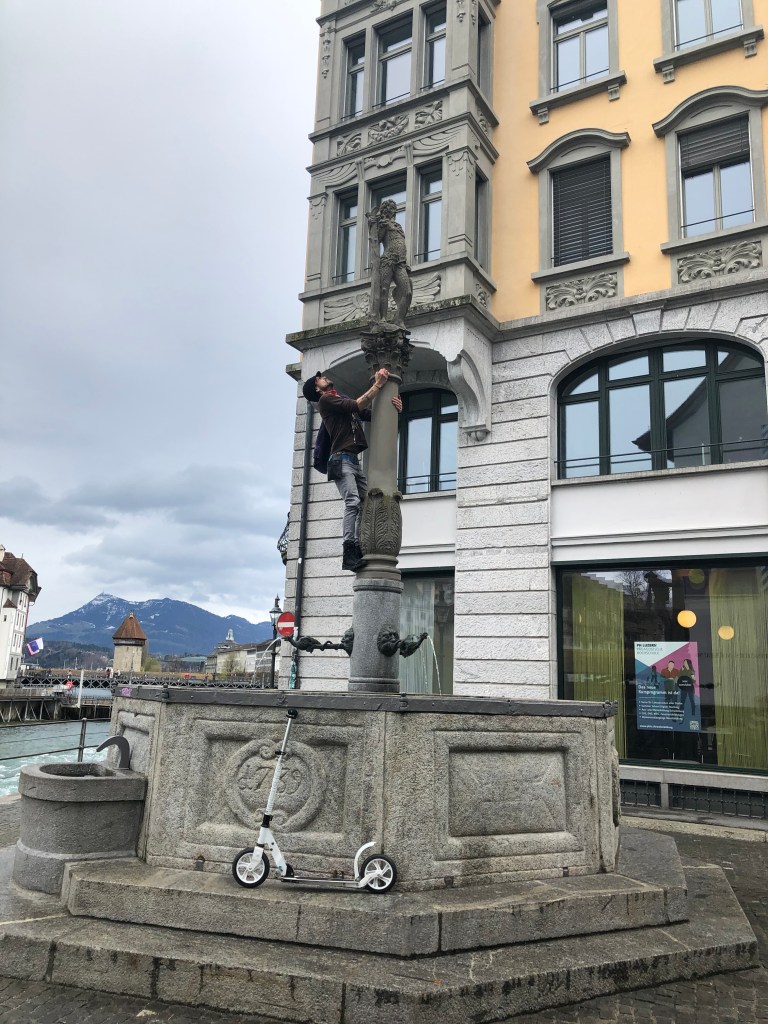 Lots of fountains, as in other cities, providing free drinking water. This one celebrates Mardi Gras, which is a big festival in Luzern.
