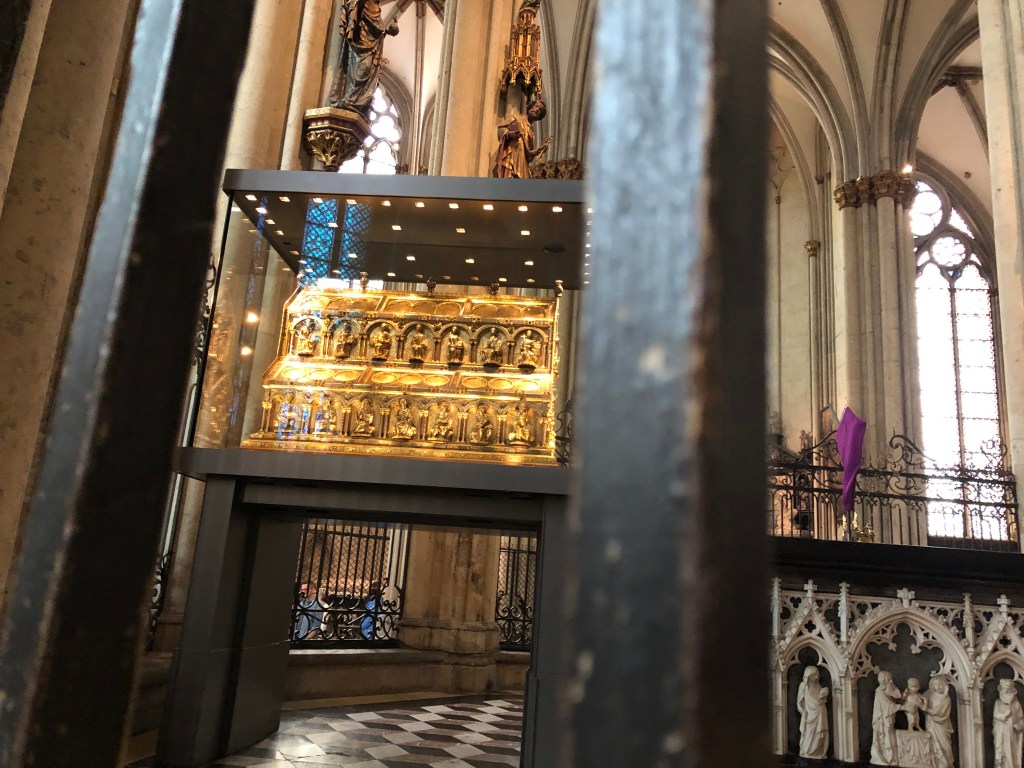 The Cathedral was a pilgrimage church because it holds the relics of the Three Kings who visited Jesus at his birth. The reliquary is a good example of Medieval goldsmithing. Too bad I could not get close.