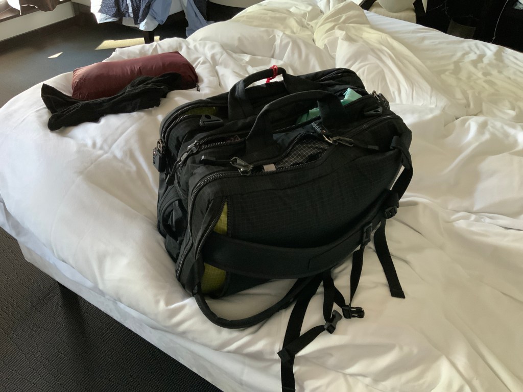 My travel bag is not very big—smaller than allowable carry-on for most airlines—but it was heavy. My shoulders and back were aching if I had to carry it or stand around with it for any length of time.