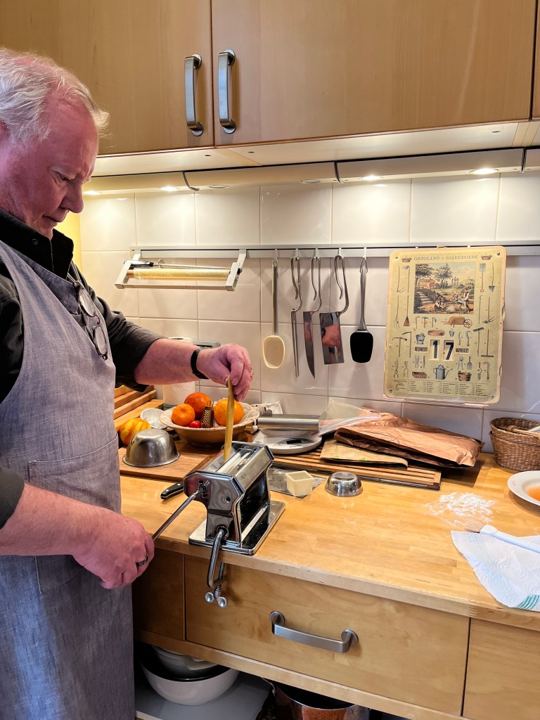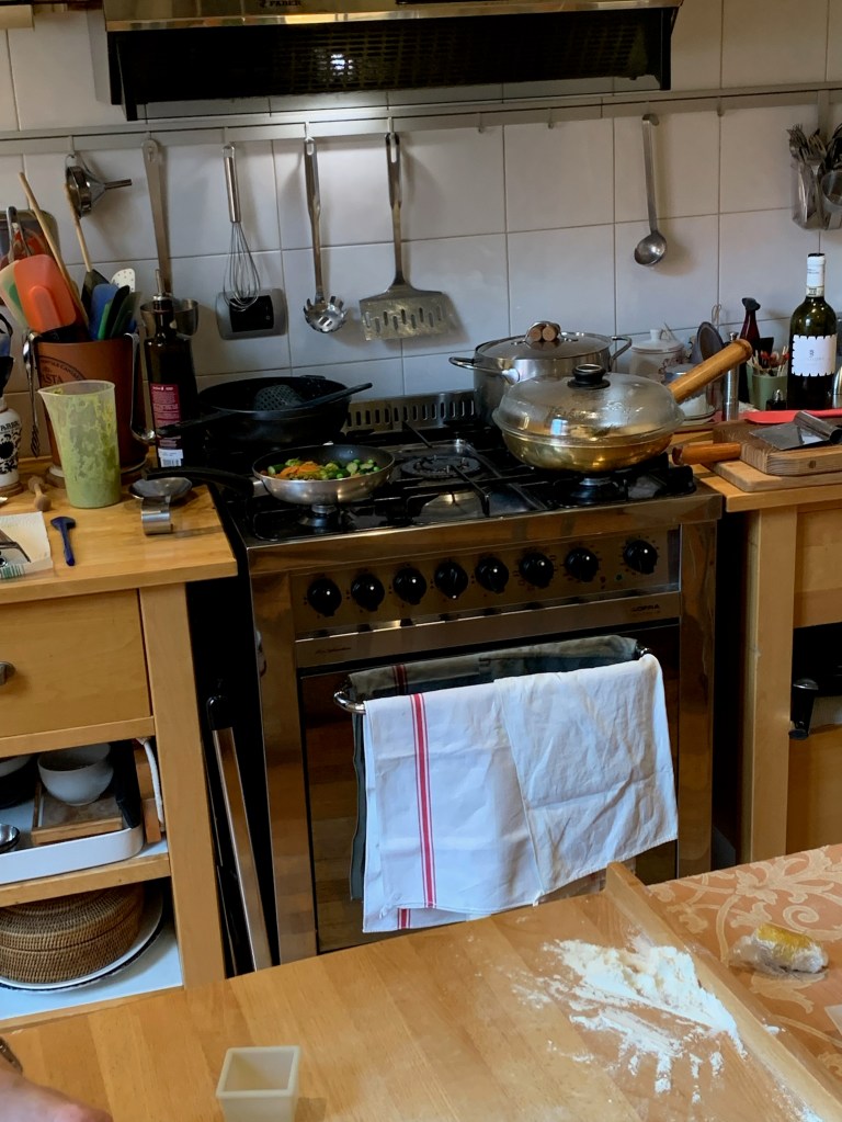 We then walked to Carmelita’s condo apartment where we made garganelli pasta, fava bean and mint pesto, braised chicken and mixed vegetables.
