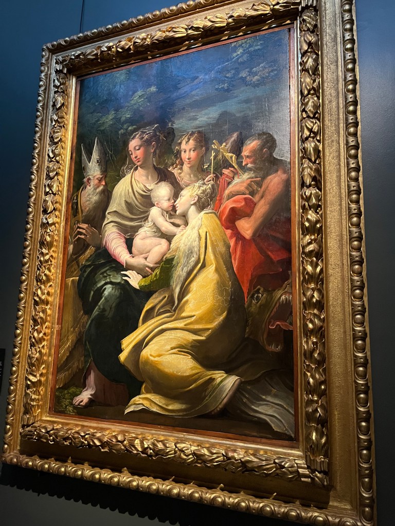 An artist whose works I am hoping to see a lot more of this vacation is Girolamo Francesco Maria Mazzola (11 January 1503 – 24 August 1540), also known as Francesco Mazzola or, more commonly, as Parmigianino. He was one of the few painters considered entirely Mannerist. He died young and most of his best works are in Parma, where he was born and began his training. He also worked in Florence, Rome and Bologna moving often due to war or plague. His two largest projects were frescoes in Rocca Sanvitale in Fontanellato (a castle near Parma) and in the church of San Giovanni Evangelista in Parma. Several of his smaller paintings, particularly portraits, are found in galleries throughout Italy and Europe. A refined sensuality and often elongated forms characterize his works. One of his most famous paintings called Madonna of the Long Neck, because the Virgin Mary has a neck like that of a swan, is in the Uffizi Gallery in Florence. What Austrian-British art historian E. H. Gombrich wrote about it also describes characteristics of the art and architecture period known as Mannerism: