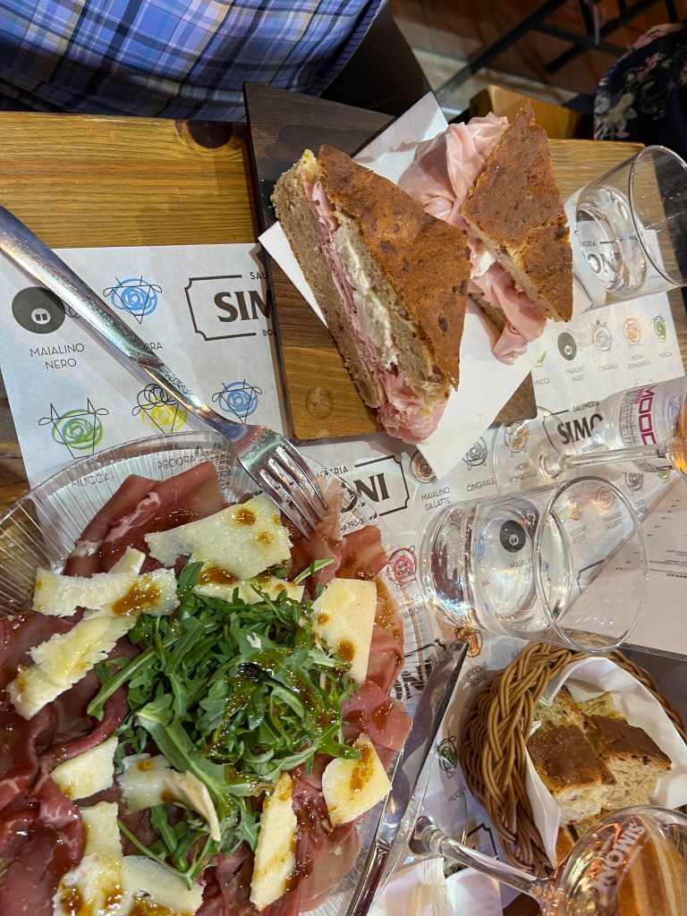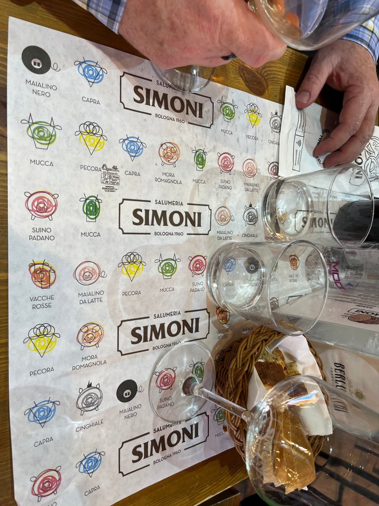 We returned to Piazza Maggiore and went to the market where we found seats at Simoni, a place recommended by Carmelita because they produce their own bread and meats and care about the quality of their other food items.