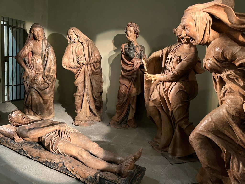 It is made from terracotta and originally was highly coloured with paint of which only faint traces remain. The work, done around 1465, is remarkable for the emotional intensity of the women’s faces.