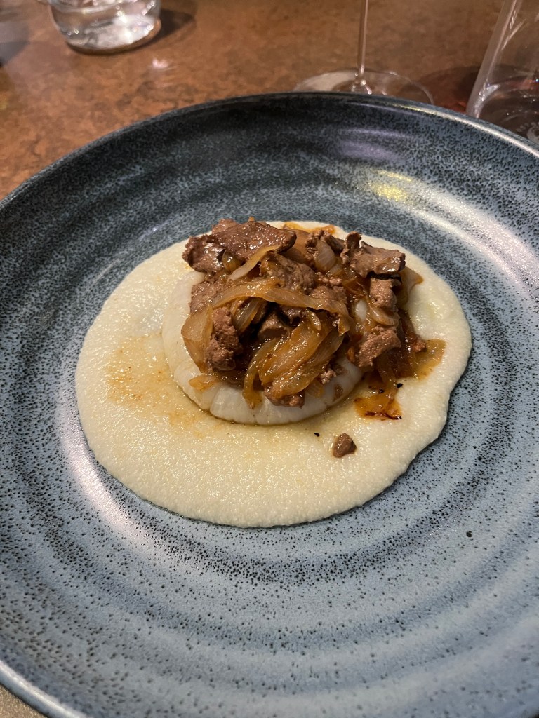 Scott had a lamb “scottaditto” which we make at home but this had a different sauce. I had fegato (liver) Venetian-style with white polenta.