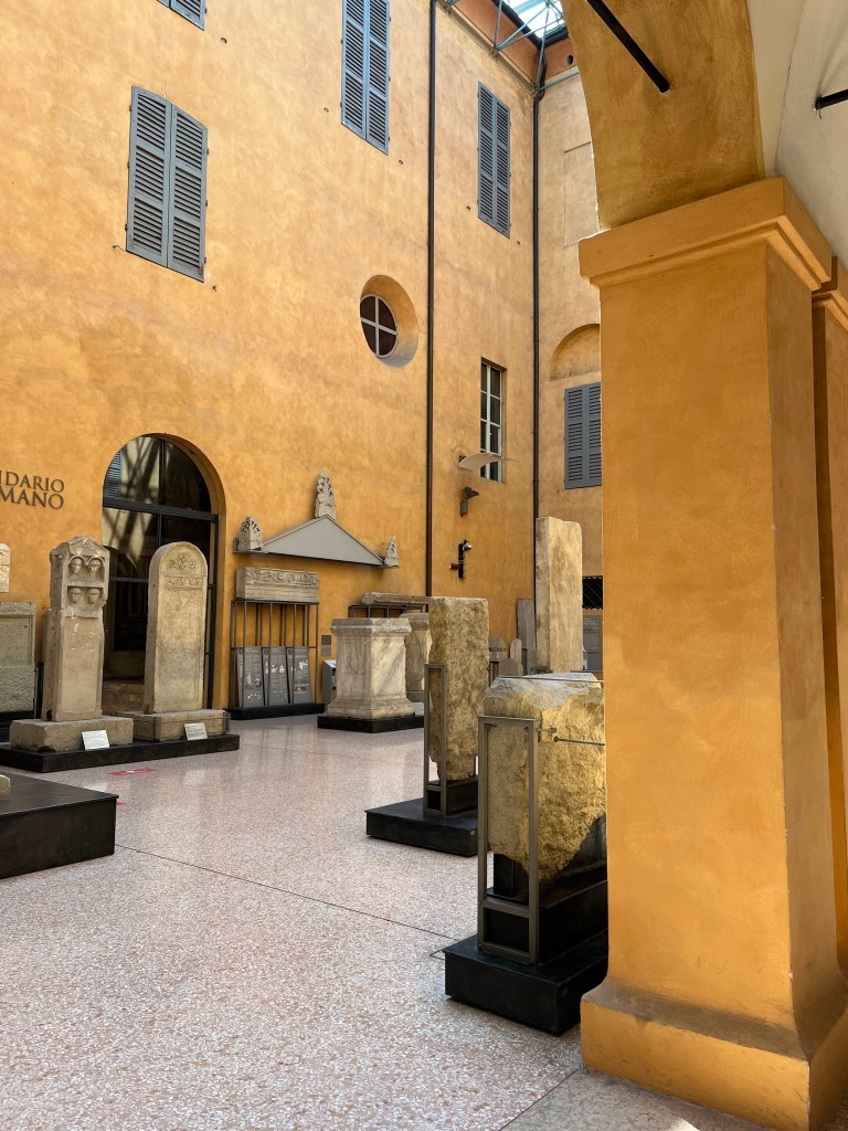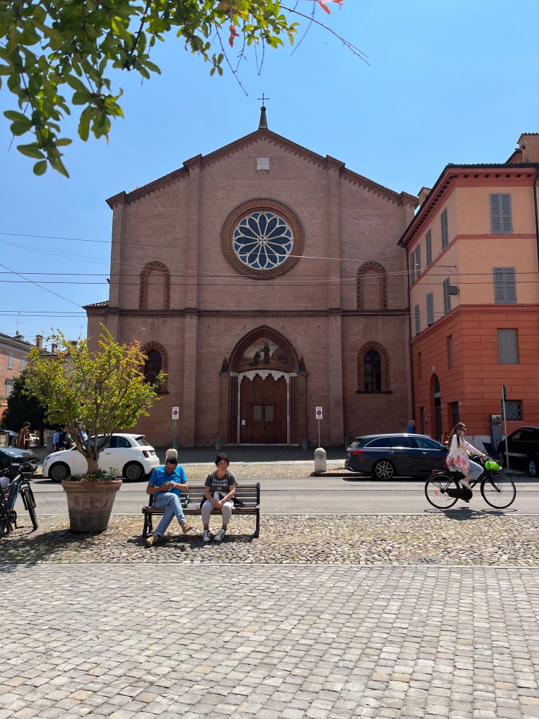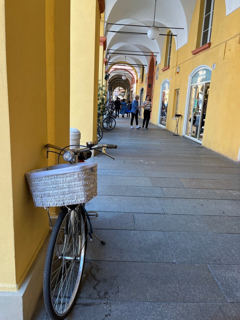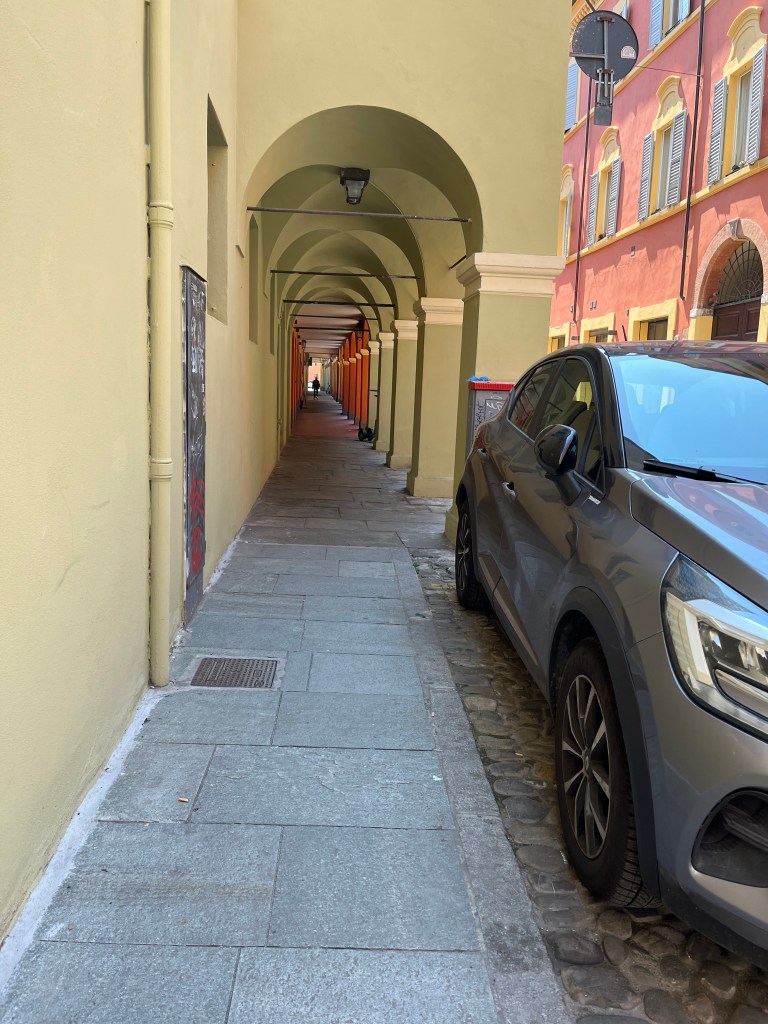 Modena, like Bologna which is in the same Emilia Romagna region, has a lot of porticos. Not as many and none as large as many in Bologna but still plenty to stay out of sun or rain. I was avoiding the sun. Some of our perambulations have been limited because of rain but for the past few days, now the sun has become the source of discomfort.
