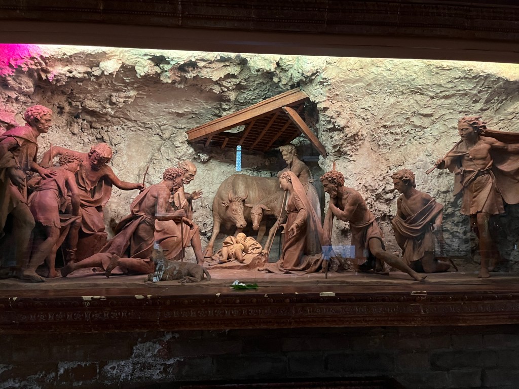 It contains the a work of the local terracotta master, the little known Antonio Begarelli. His life-size scene of the Deposition fills an entire chapel. Other churchs also feature his work.