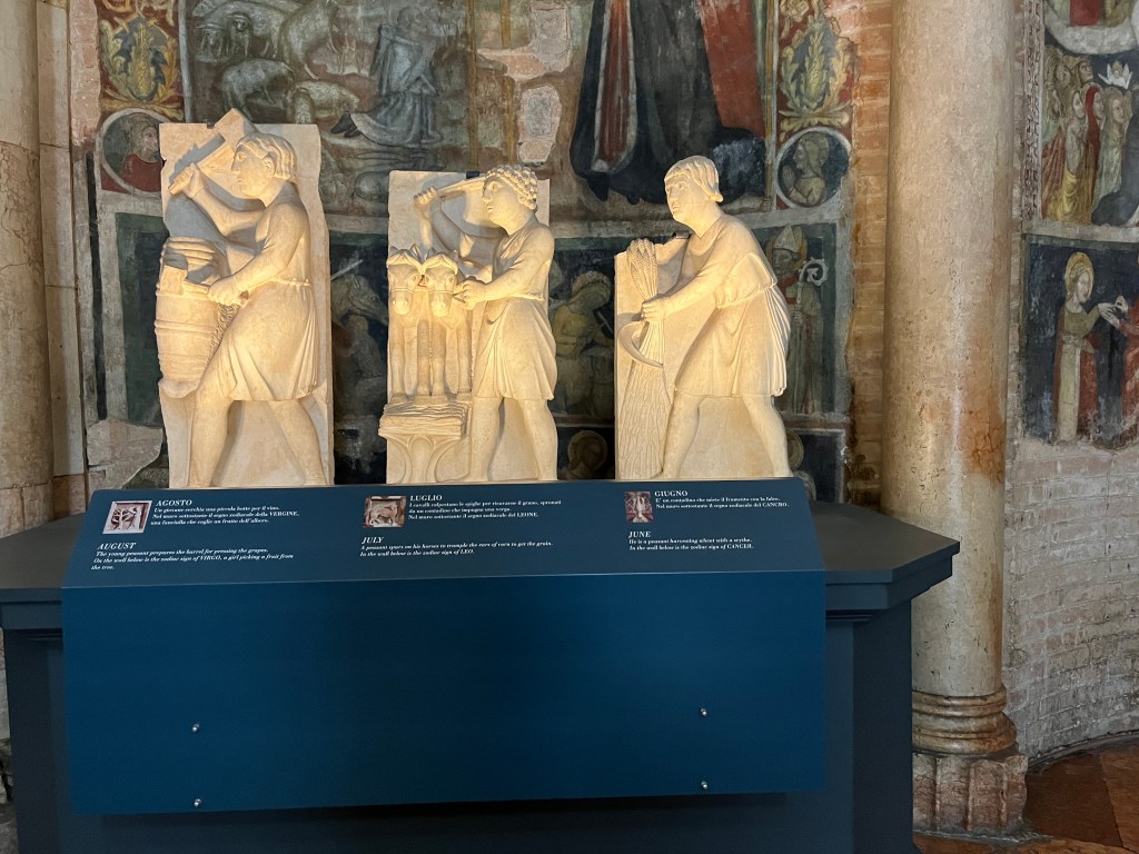 Parma Baptistery with its 13th century statues showing the months of the year some with the associated astrological sign: