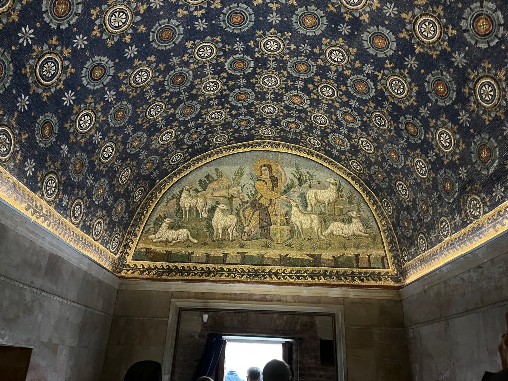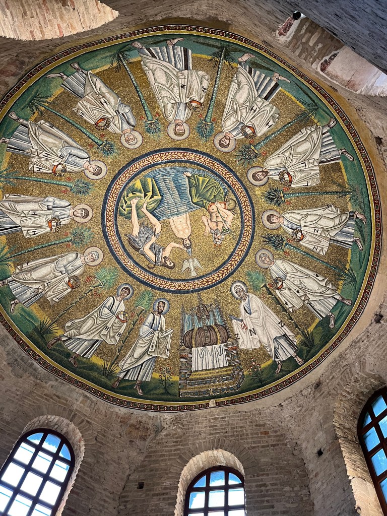 We then went to the Arian Baptistery where the original mosaics remain. One scholar found evidence that these mosaics were to have been removed but the ship sent to do the work never arrived—probably bad weather.