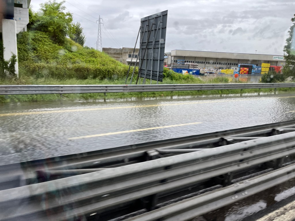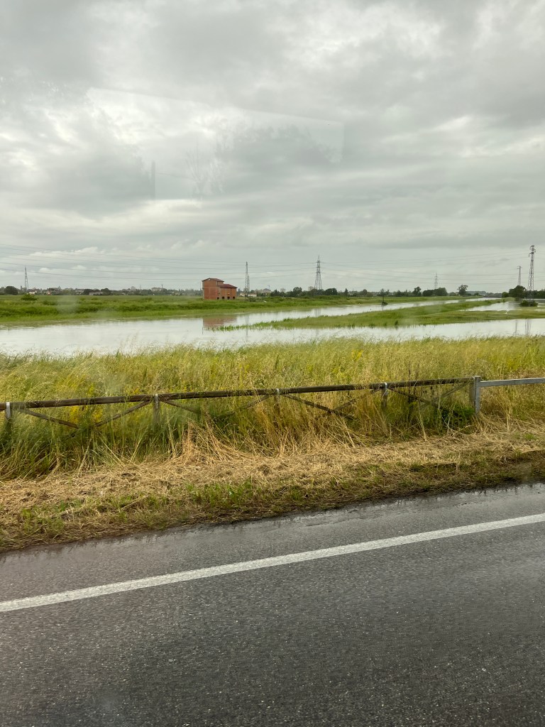 The driver taking us to Bologna was worried about the roads and delays so we left two hours earlier than planned. We saw water dangerously close to flowing over the road and at one point was starting to move across. The driver thought the road might get closed and was glad we started early.