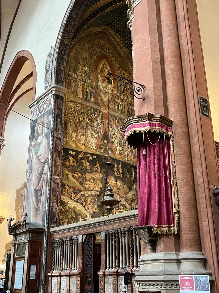I hopped a taxi and spent the afternoon in the Centro Storico of Bologna, looking again at the market, some stores and San Pedronio where I saw a rather poorly maintained Parmigianino altarpiece of San Rocco.