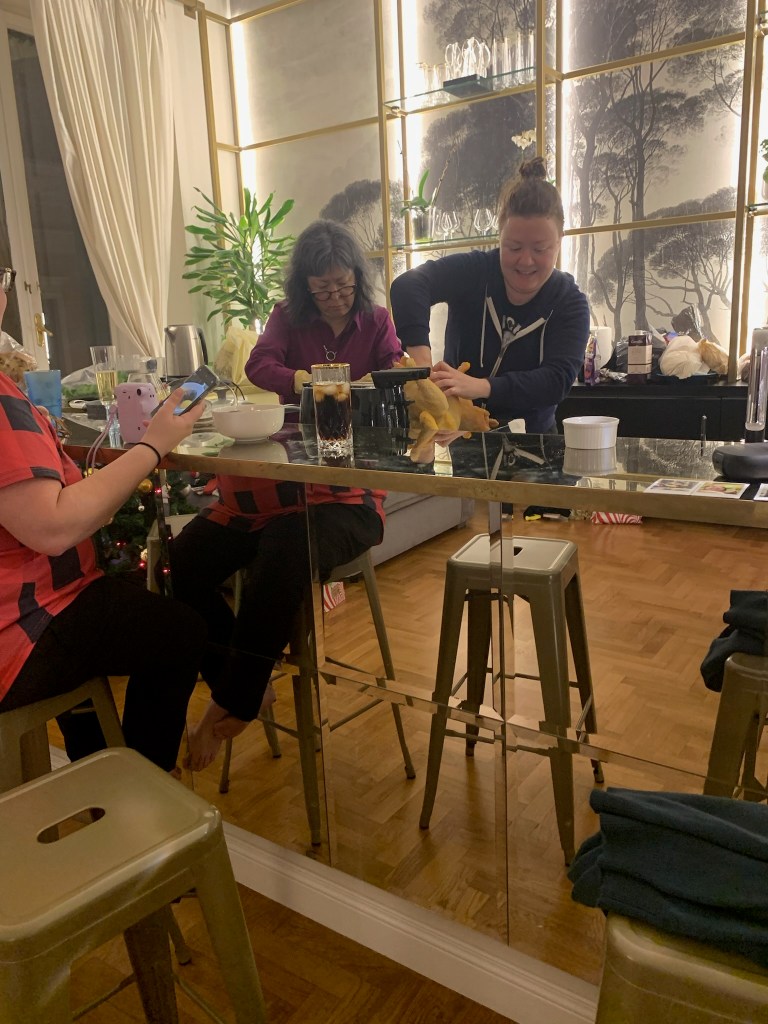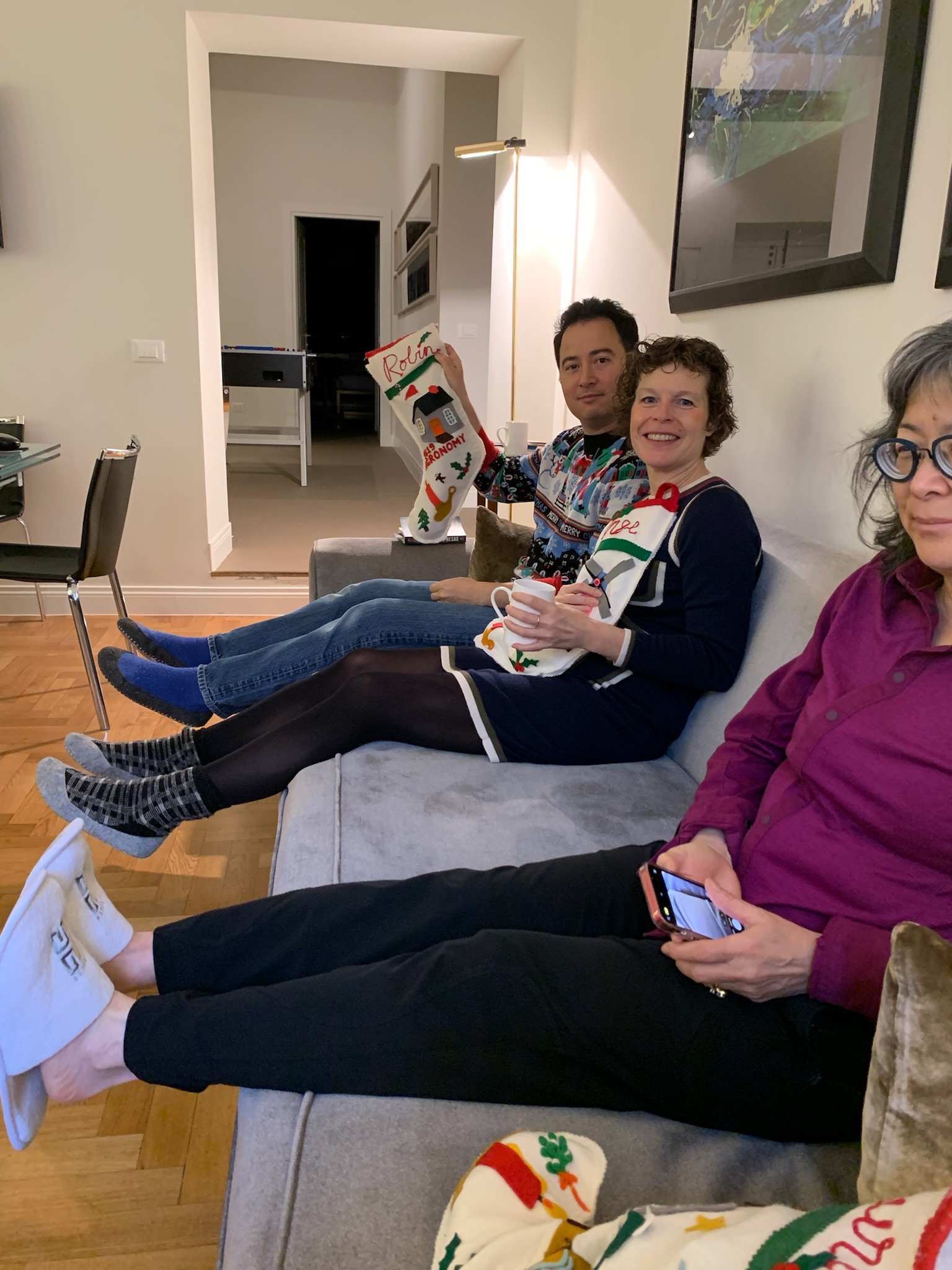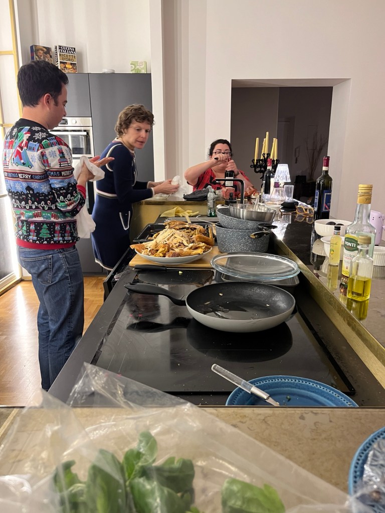 Then back to the apartment to cook Christmas dinner that included chicken with head and feet still on. The necks and innards made stock for gravy.
