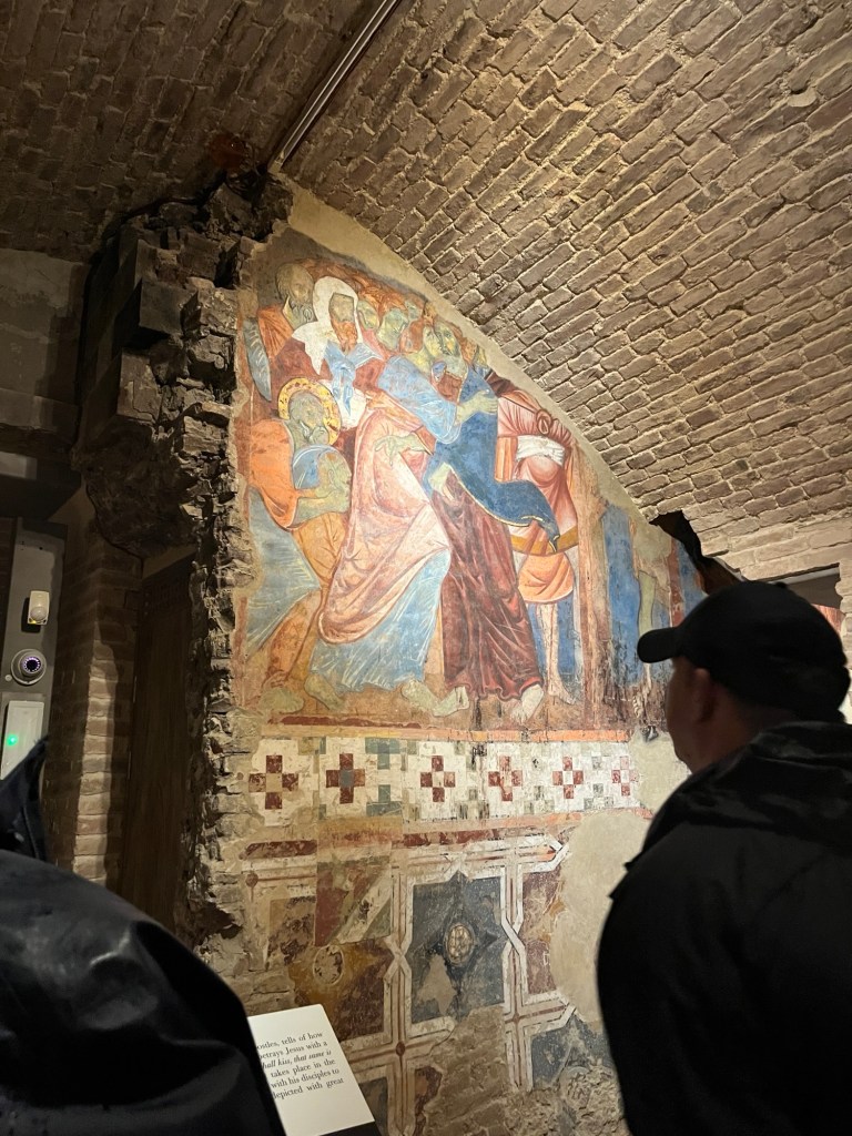 An area under part of the Duomo was excavated only about 20 years ago. The underground part is, I’m guessing, the reason for the name, but what was discovered were early foundations of the church which contained a fresco cycle with some well preserved scenes from the life of Christ. The frescoes date to the early 1200s and must have inspired Duccio’s cycle of the life of Christ.