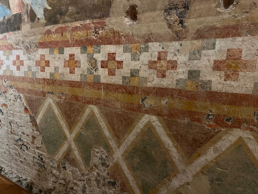 An interesting sight was graffito on the works in the crypt. Graffito means scratching in Italian. No one knows whether these were a deliberate part of the work or like today’s graffiti, a bit of vandalism or to express the markings more positively, street art additions.