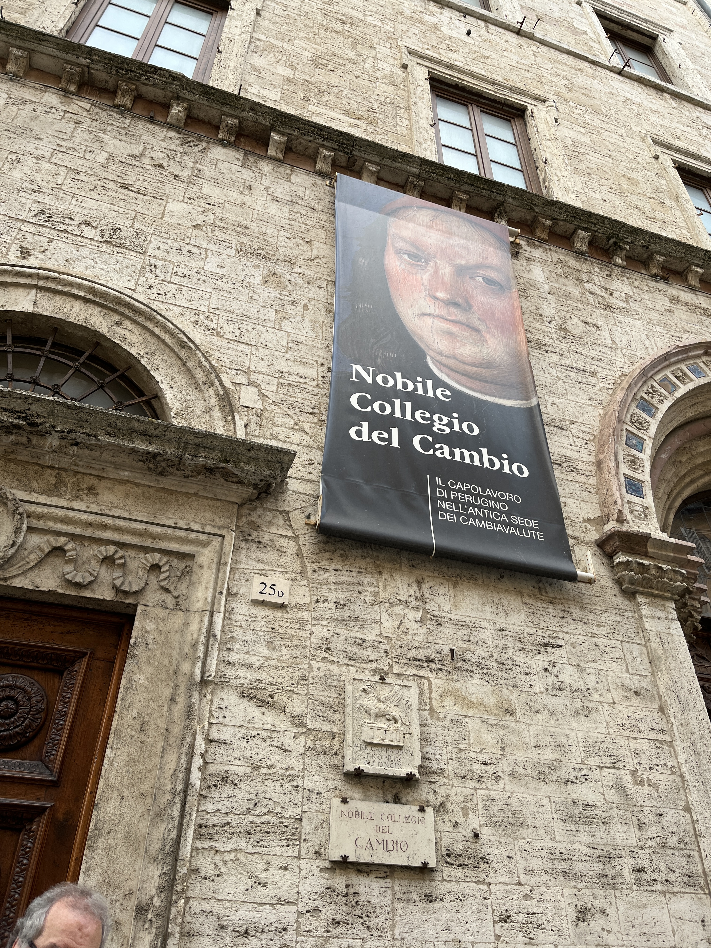 .We looked at Perugino’s fresco in the Collegio del Cambio, a bankers’ guild meeting rooms. No photos allowed inside.