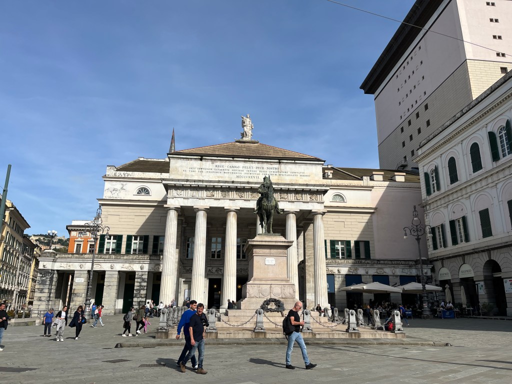 Scott now has cold symptoms. While he napped, I wandered nearby. Below the theatre, Carlo Felice, and in front, a statue of Garibaldi, hero of the battles for Italian unification. I think every city in Italy has a street named for him but since he was born nearby, he’s especially given pride of place in the city.