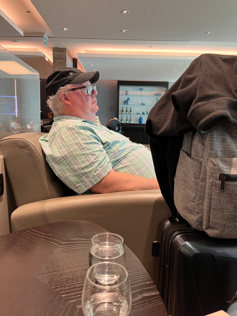 Security was relatively fast—much faster than when I landed. So by 12:30 we had nothing to do but wait for our 3:15 flight. At least we had lounge access which increased napping possibilities in comfy seats.