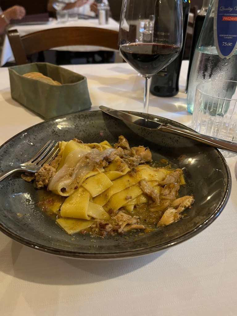 By 7 pm, the travel was taking its toll. Although 7 is early for Italians to dine, I needed food and then bed, both helped by a glass of wine.