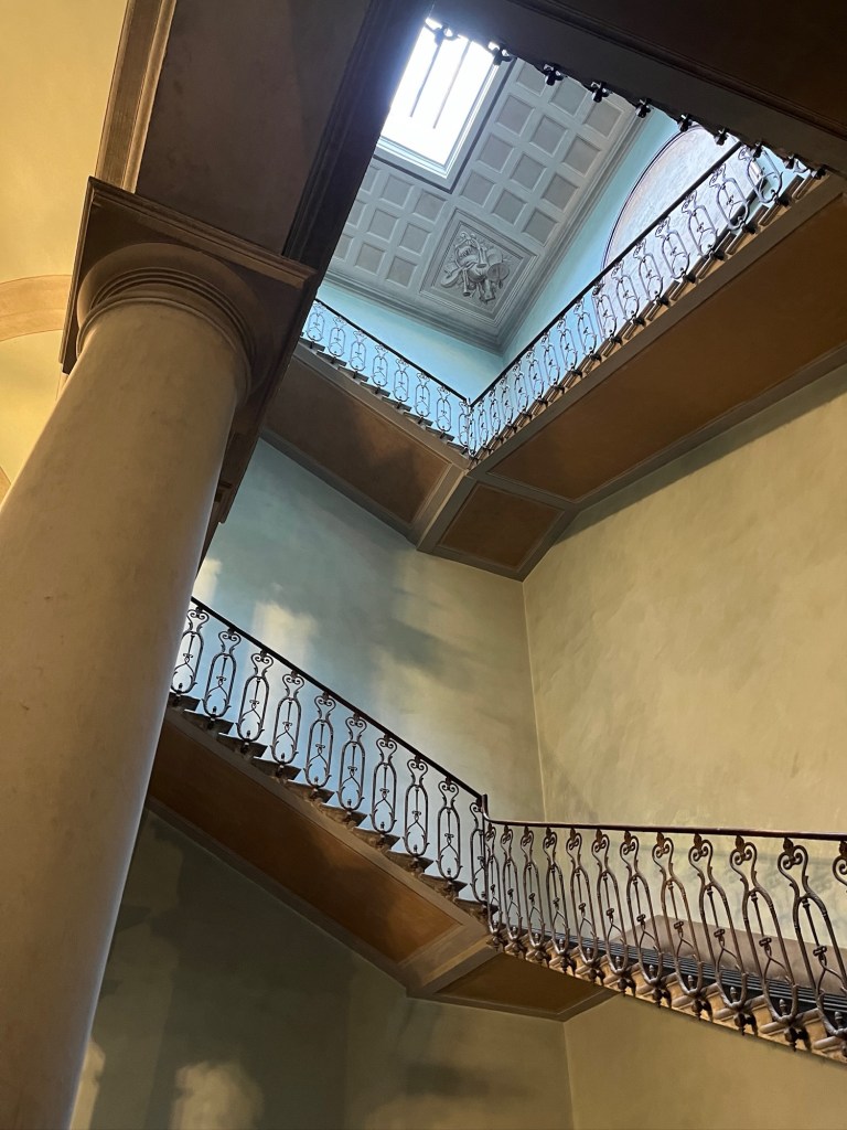 We had an afternoon class wrapping up orientation to living in Italy in the main school building. Its interior staircase: