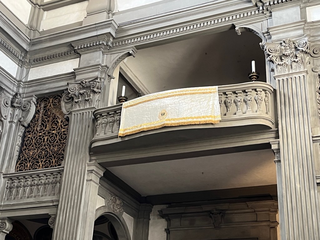 Popped into Santa Felicità to take a photo of the Medici private box for the church which is just off the Vasari Corridor. I could see people in the Corridor taking photos.
