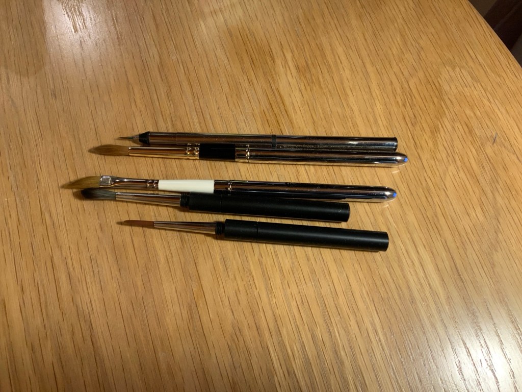 I want to do some painting. I haven’t pulled out my paints since October 5. I brought the bottom three paint brushes but bought the top two here. I need to test drive them.